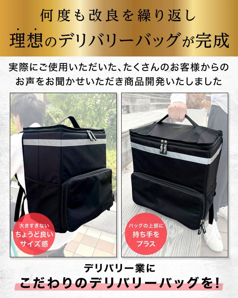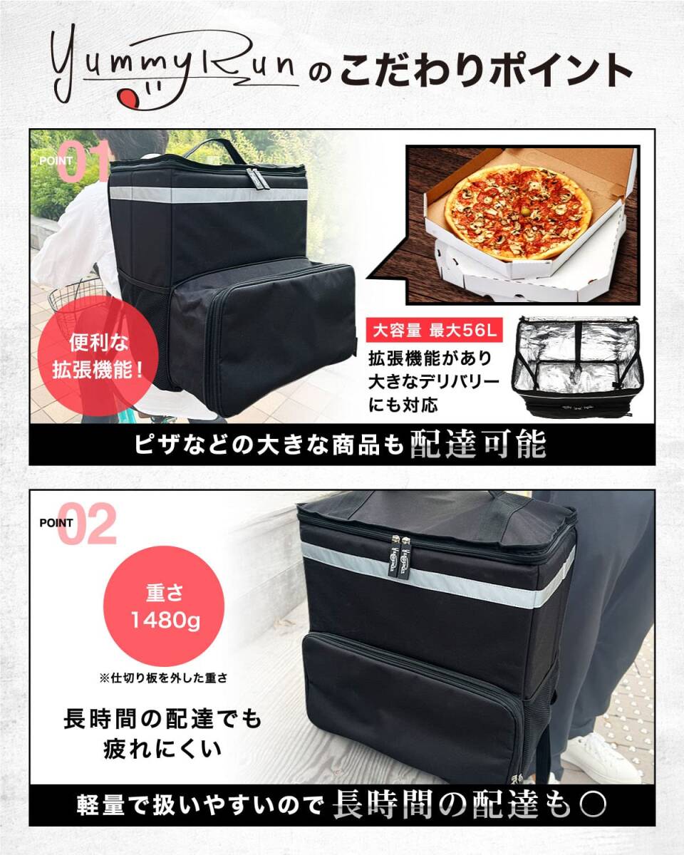 ♂【最大56Lの大容量設計】ピザやお寿司など大きなデリバリーの配達にも対応できるように拡張できる配達バッグ!