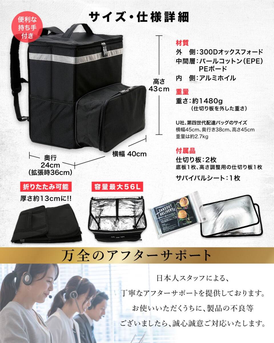 ピザ リュック バッグ 寿司 デリバリーバック 防水 拡張 大容量 配達バッグ 56L [拡張機能付きで効率UP] デリバリーバッ