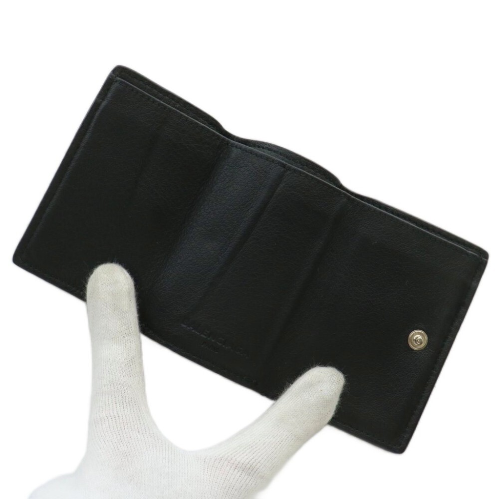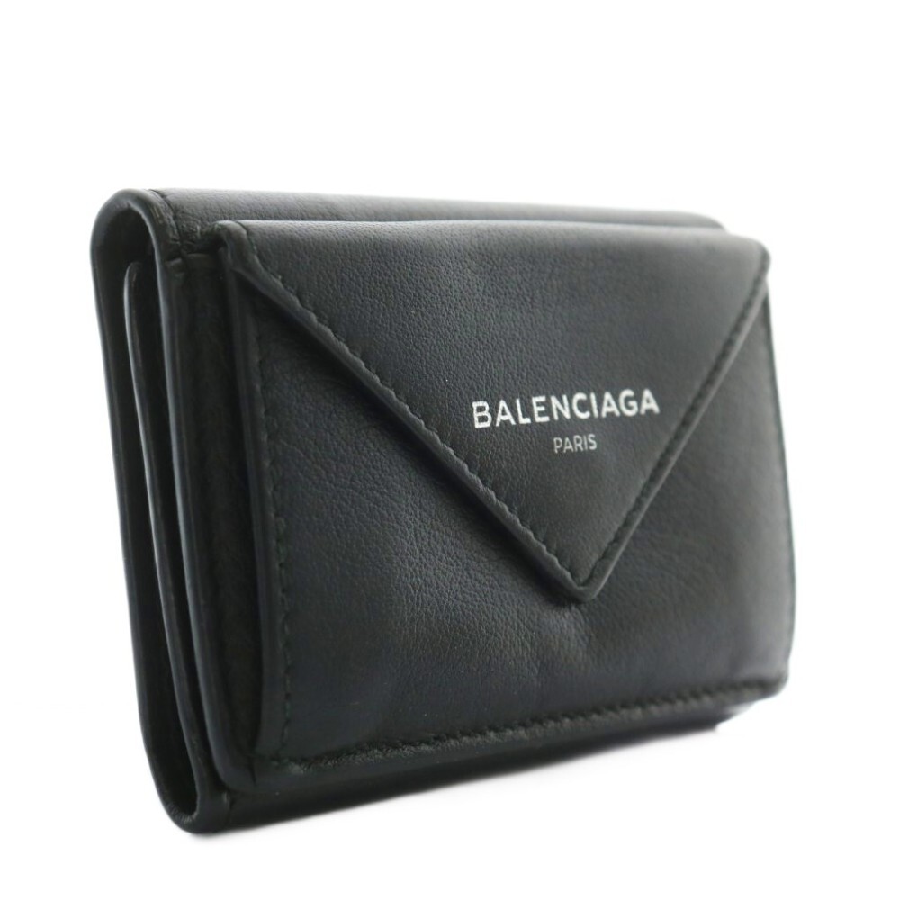 バレンシアガ BALENCIAGA ペーパーミニウォレット 財布 三つ折り レザー ロゴ 黒 ブラック /XZ ■OH ■GY18 レディース