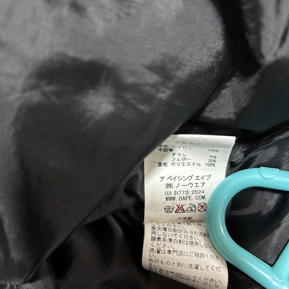アベイシングエイプ A BATHING APE・ダウンジャケット・ブラック・サイズS・中古です。