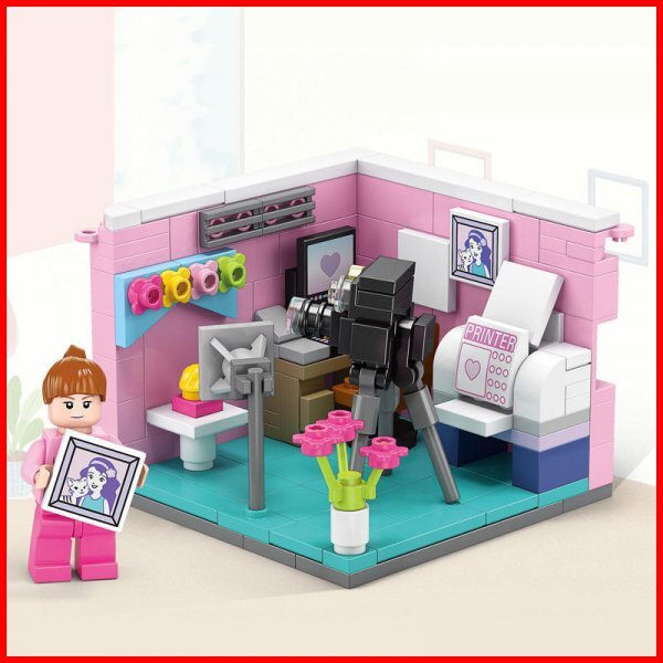 ミニルーム 写真家 カメラマン フォトグラファーを楽しむ趣味部屋をブロック玩具で表現しました。
