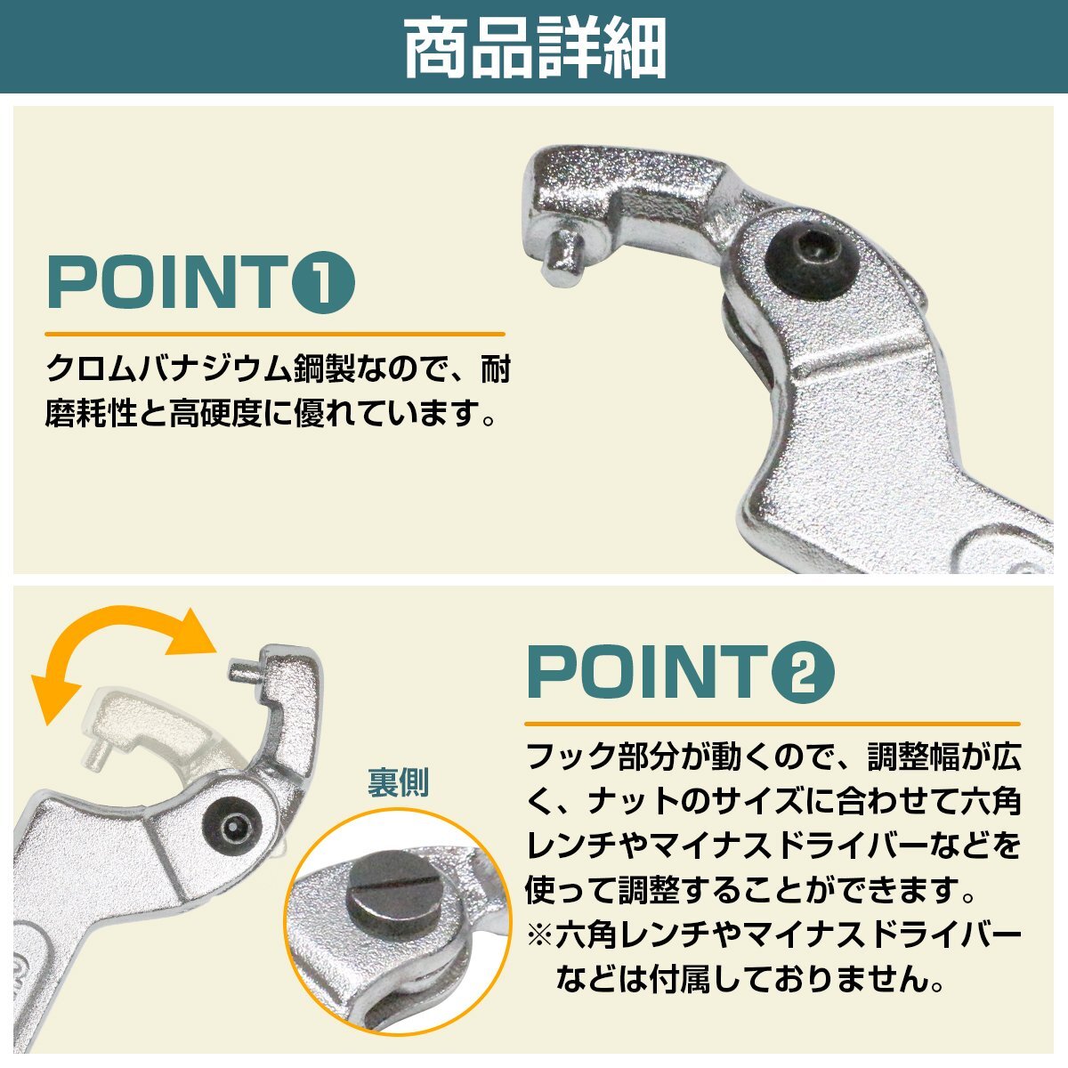 ●フック部分が動くので、調整幅が広く、ナットのサイズに合わせて六角レンチや