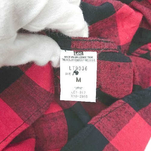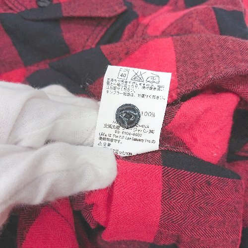 ◇ ⊇ Lee リー フロントボタン ウエスタン ネル 大人カジュアル ロゴタグ 長袖 シャツ サイズM レッド系 メンズ E