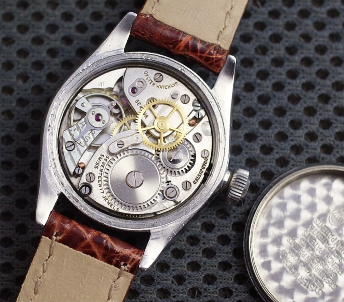 裏蓋内側にもオイスターウォッチカンパニー社の刻印があります。