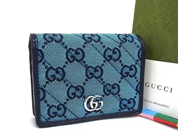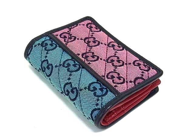 1円 ■美品■ GUCCI グッチ GGマーモント GGキャンバス×レザー 二つ折り 財布 ウォレット ブルー系×ピンク系×ネイビー系 BP6585