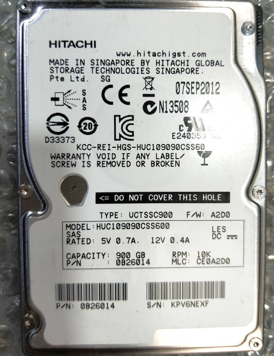 【中古パーツ】 2.5インチ HGST HUC109090CSS600 10K SAS 900GB HDD 正常品 1台■ SAS 2283