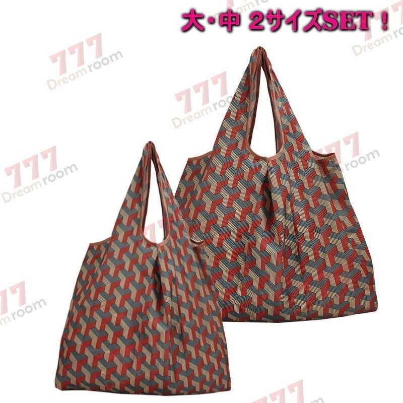 大・中 2サイズset デザイン ショッピングバッグ【F-220-09】 トートバッグ エコバッグ コンビニ袋 折りたたみ