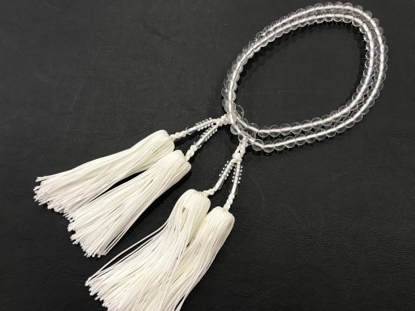 新品 女性用数珠 念珠 丸珠 2連 白房
