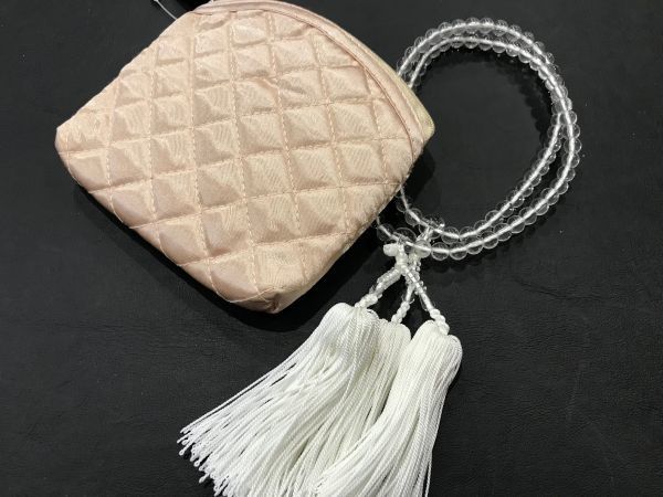 ▼三作▼送料無料 女性用数珠 丸珠 2連 白房 念珠入れ ポーチ付き