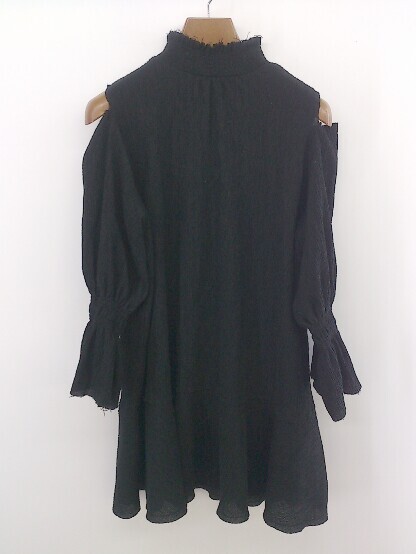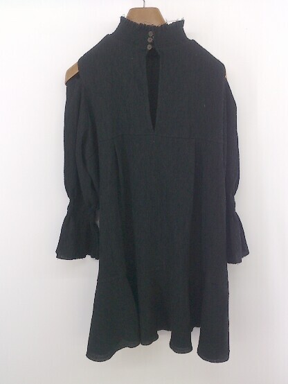 ◇ JEANASIS ジーナシス 肩開き シャーリング 長袖 ミニ ワンピース チュニック サイズF ブラック レディース E
