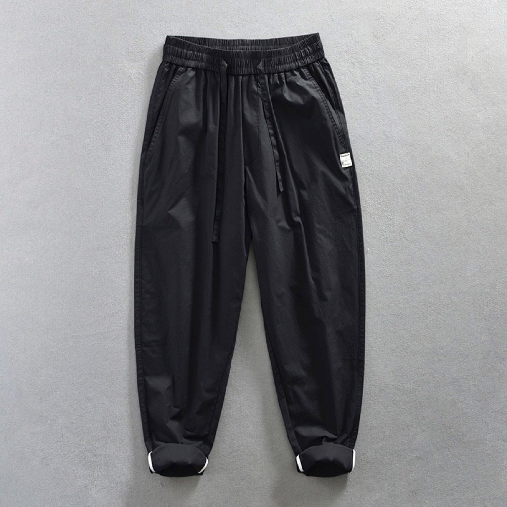 メンズカーゴパンツ ワイドパンツ コットン ズボン 無地 ワークパンツ イージーパンツ ロングパンツ カジュアル ボトムス ブラック M