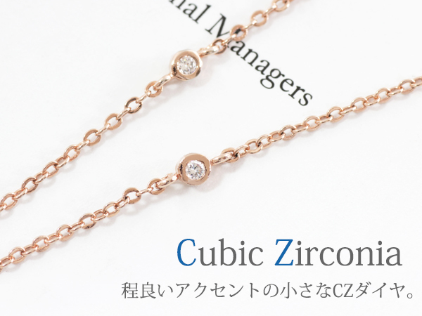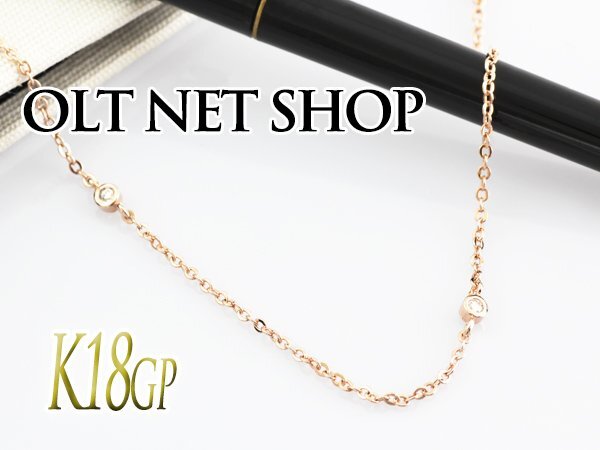 ネックレス レディース シンプル ピンクゴールド 18金 18kコーティング ステーション チェーン/K18GP CZダイヤ 一粒ステーションネックレス
