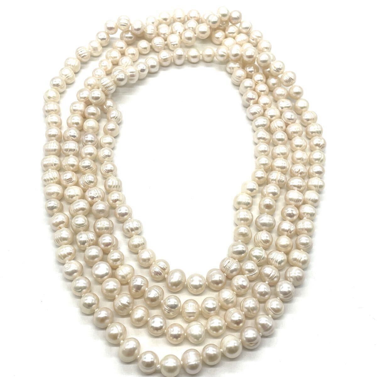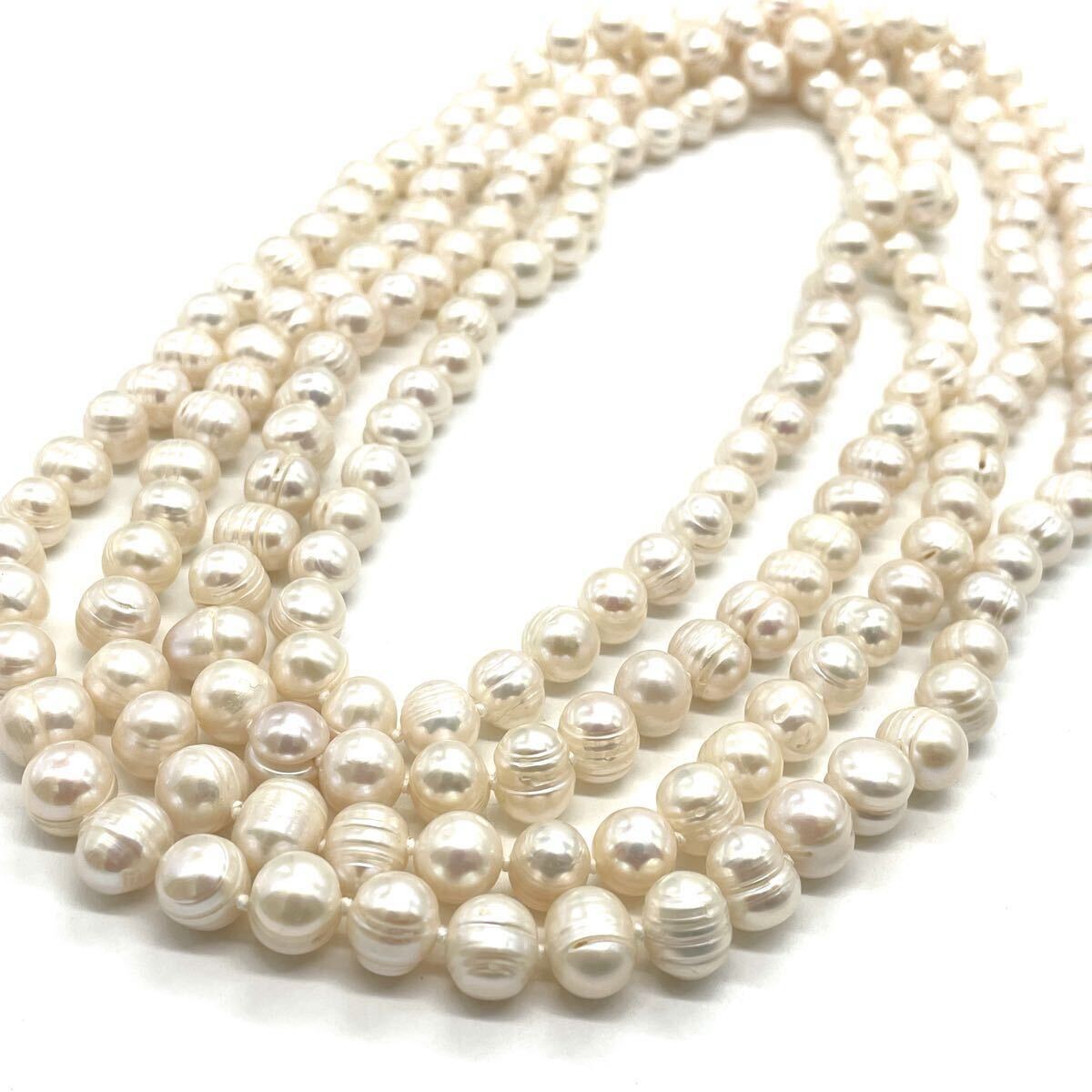 ロングネックレス 真珠 4連 バロックパール 淡水 アクセサリー 和装小物 ジュエリー ホワイト系 照り