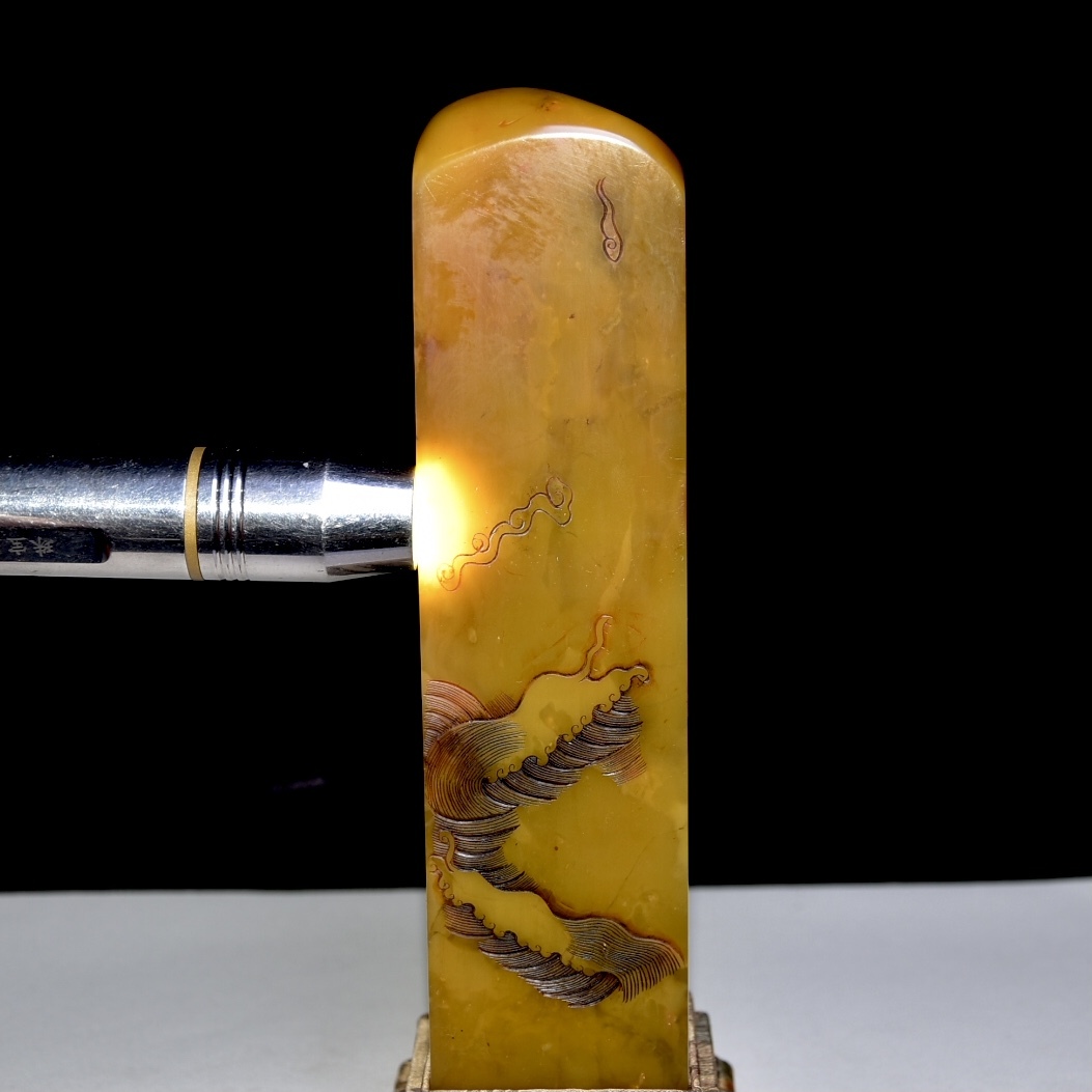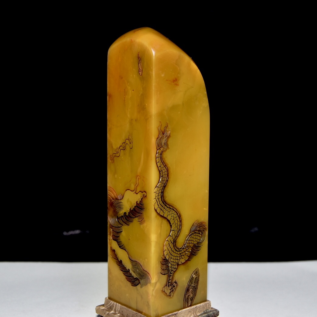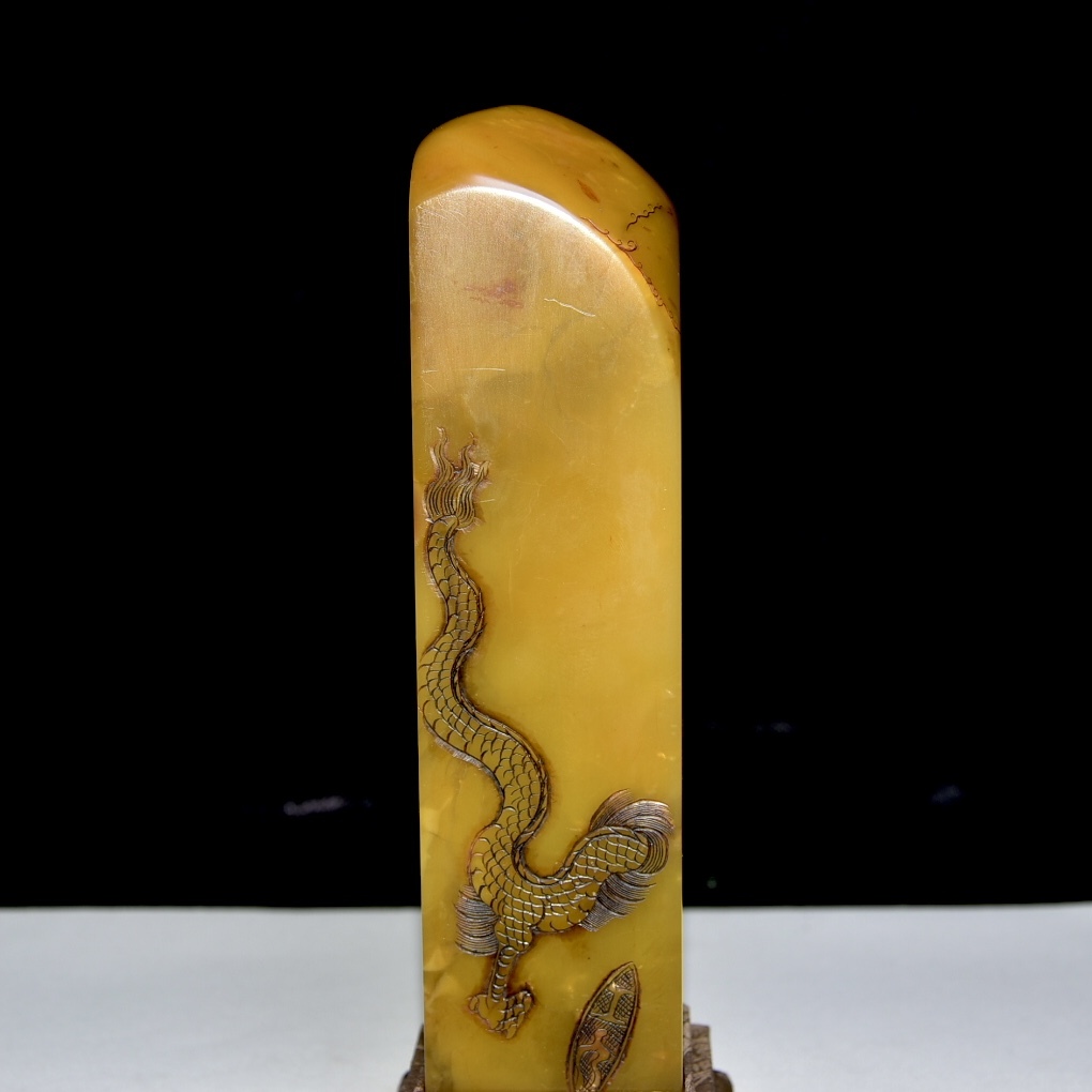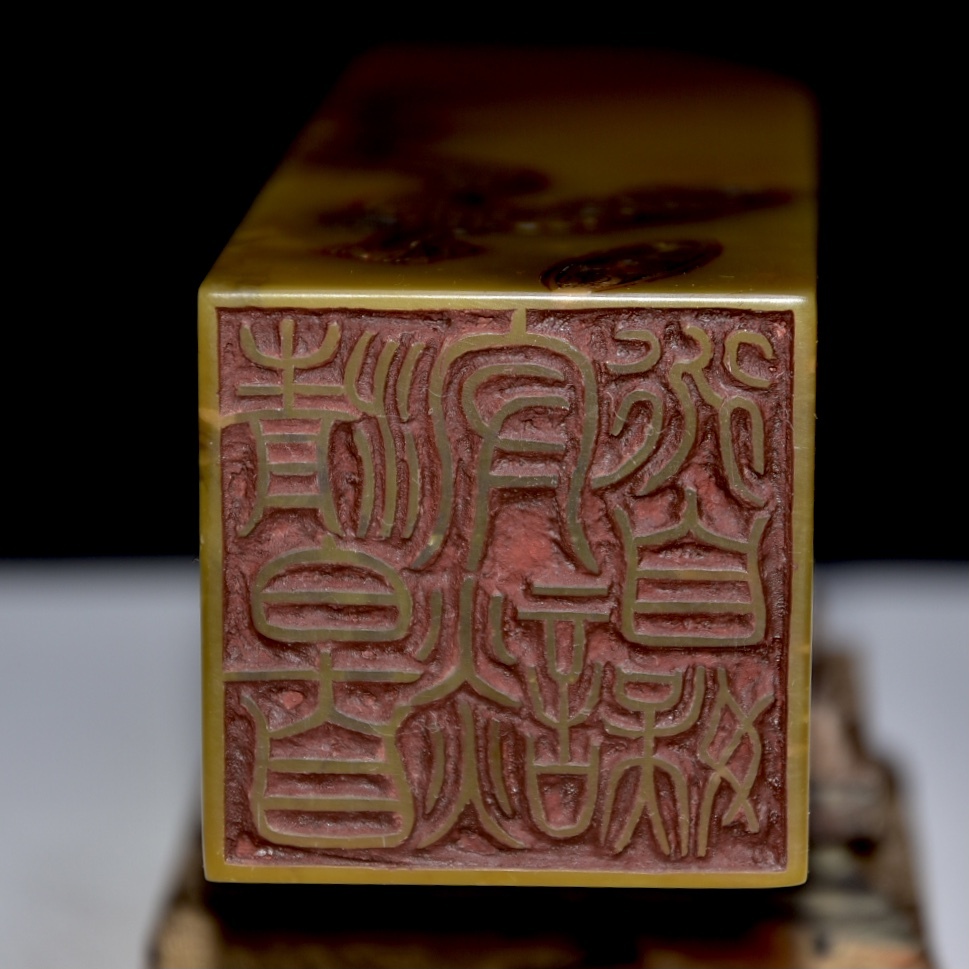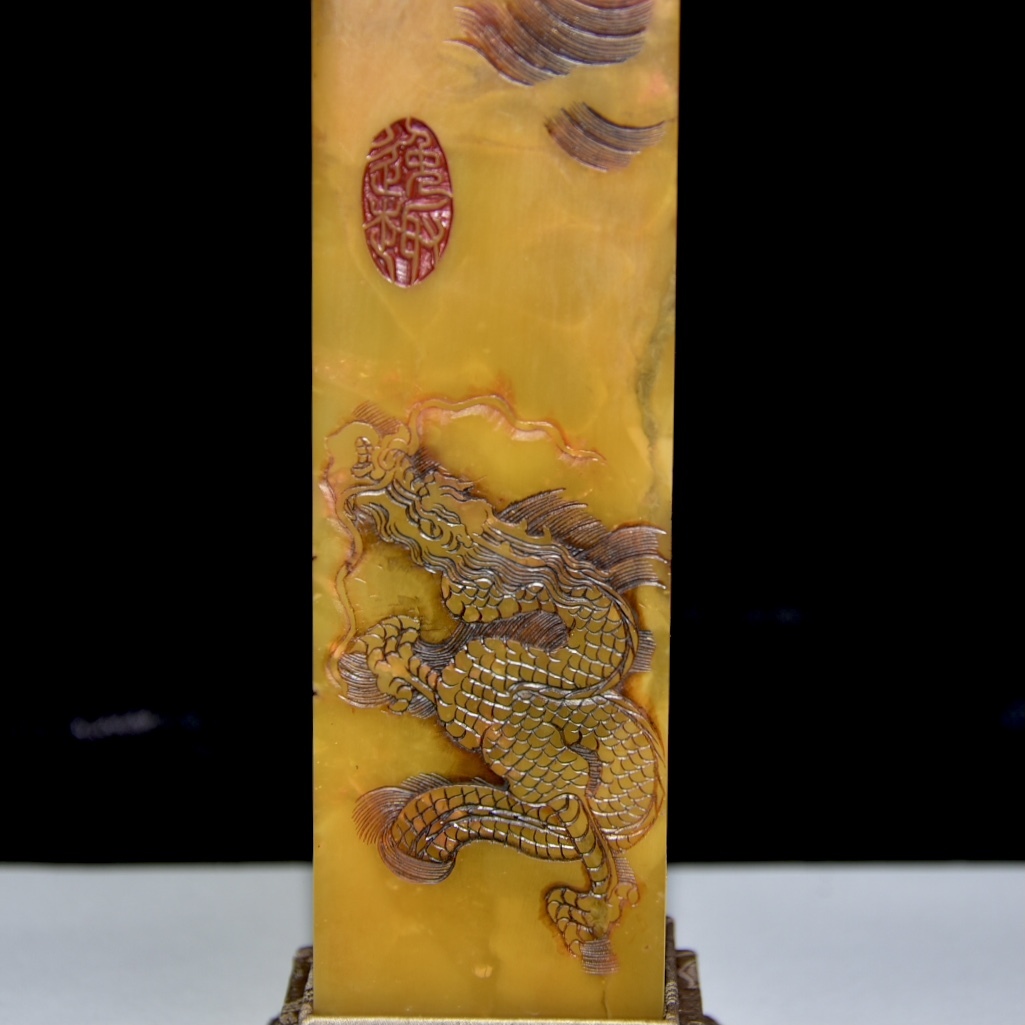 館蔵 寿山石 田黄石彫 徐三庚刻石 龍紋 印鑑 天然石 手彫 篆刻 古印材 極細工 中国古玩 古美味 骨董品 中国古美術 古美味 蔵出