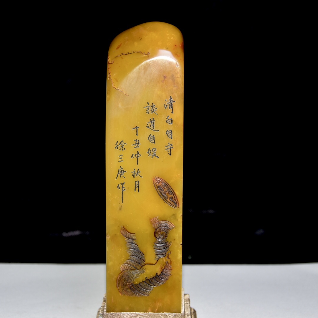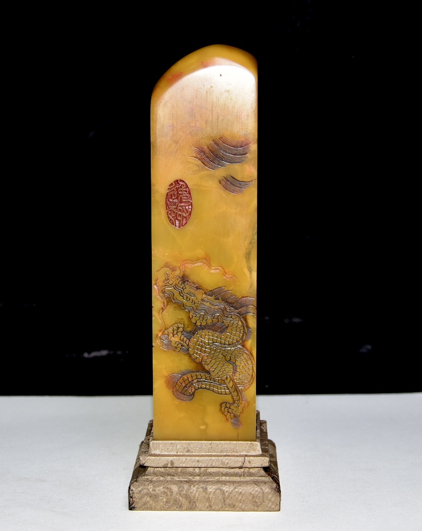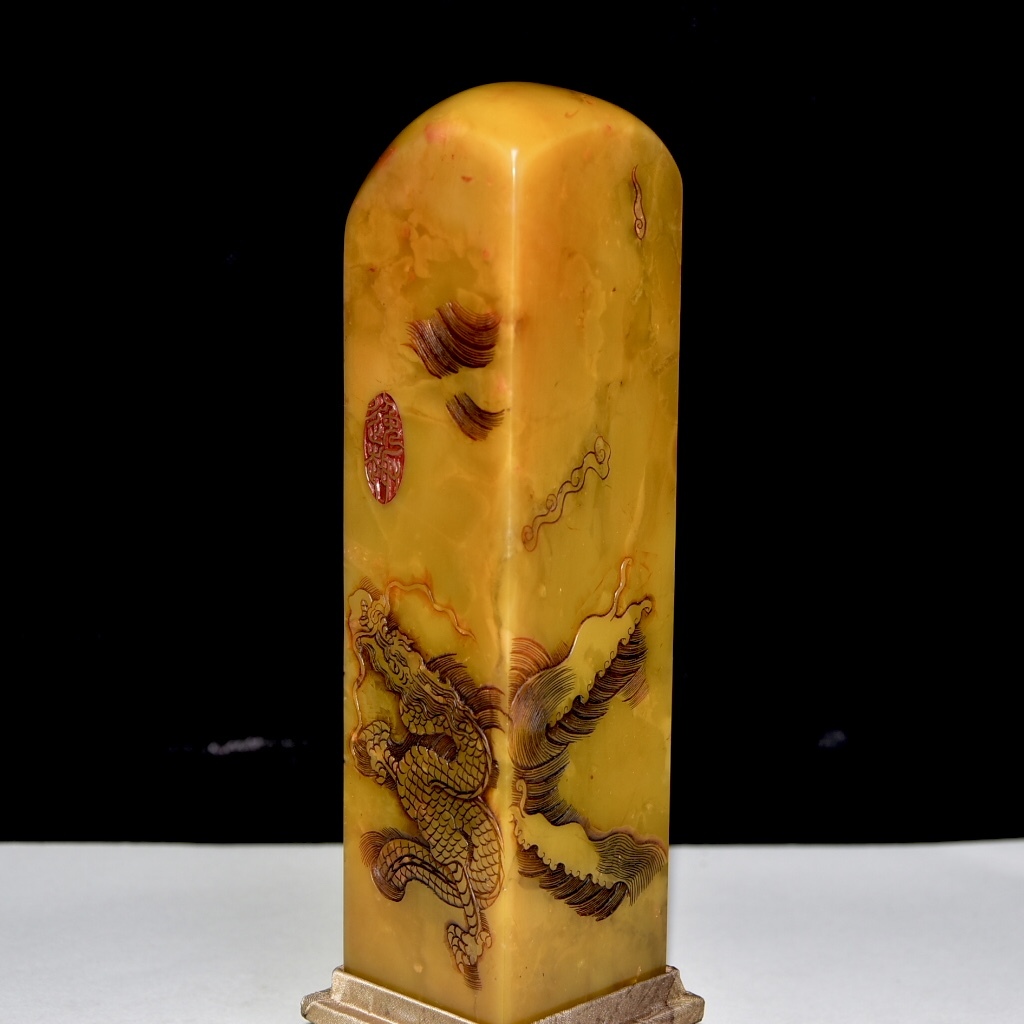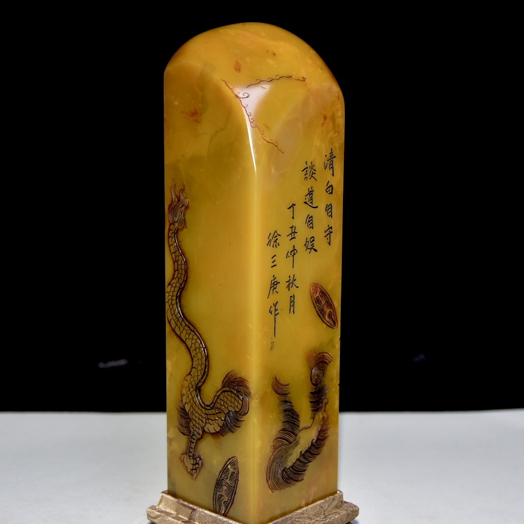 館蔵 寿山石 田黄石彫 徐三庚刻石 龍紋 印鑑 天然石 手彫 篆刻 古印材 極細工 中国古玩 古美味 骨董品 中国古美術 古美味 蔵出