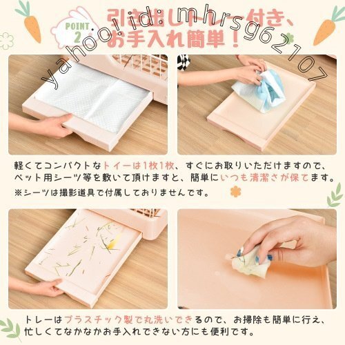 • 【十分なスペース】うさぎ・犬・猫が入るだけではなく牧草などさまざまなものも置くことが可能ですので、窮屈にならないレイアウトを考えて十分なスペースが確保できるケージです。