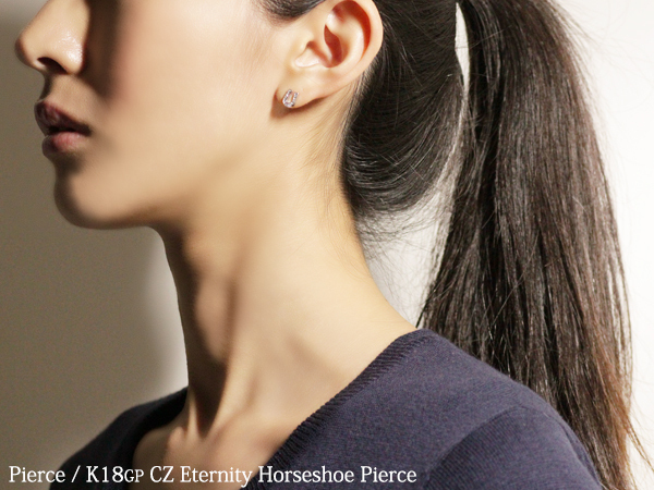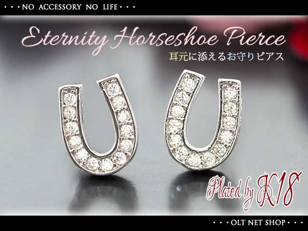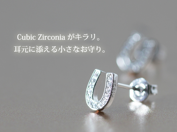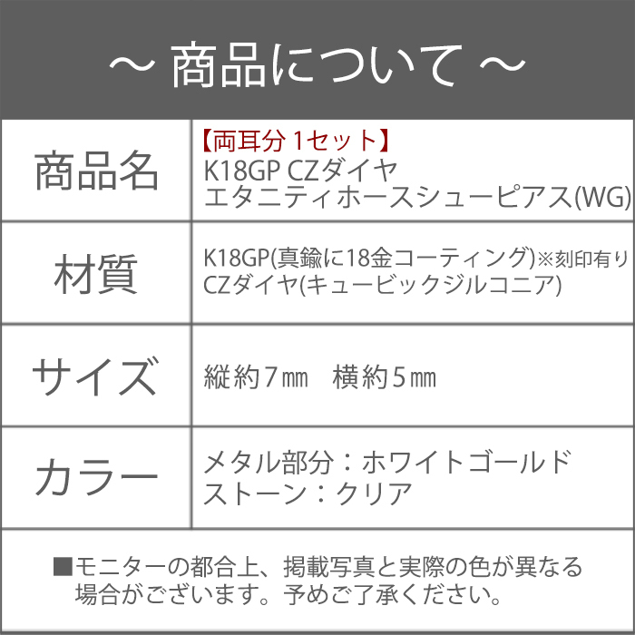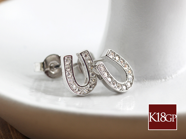 新品/ピアス/K18GP/馬蹄/シルバー/ダイヤ/18金/レディース/女性/ホワイトゴールド/ホースシュー/両耳/スタッド/シンプル/CZ/WG