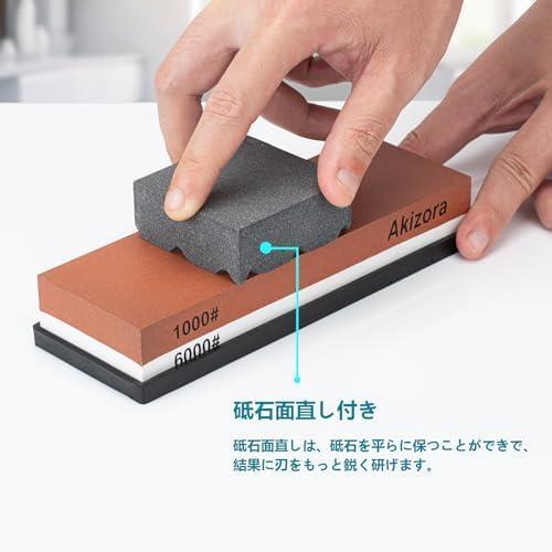 #1000/#6000単品 Akizora 砥石 包丁研ぎ石 1000 6000 両面砥石セット 面直し付き 角度固定ホルダー付き 家庭用中砥石 包丁 仕上げに最適