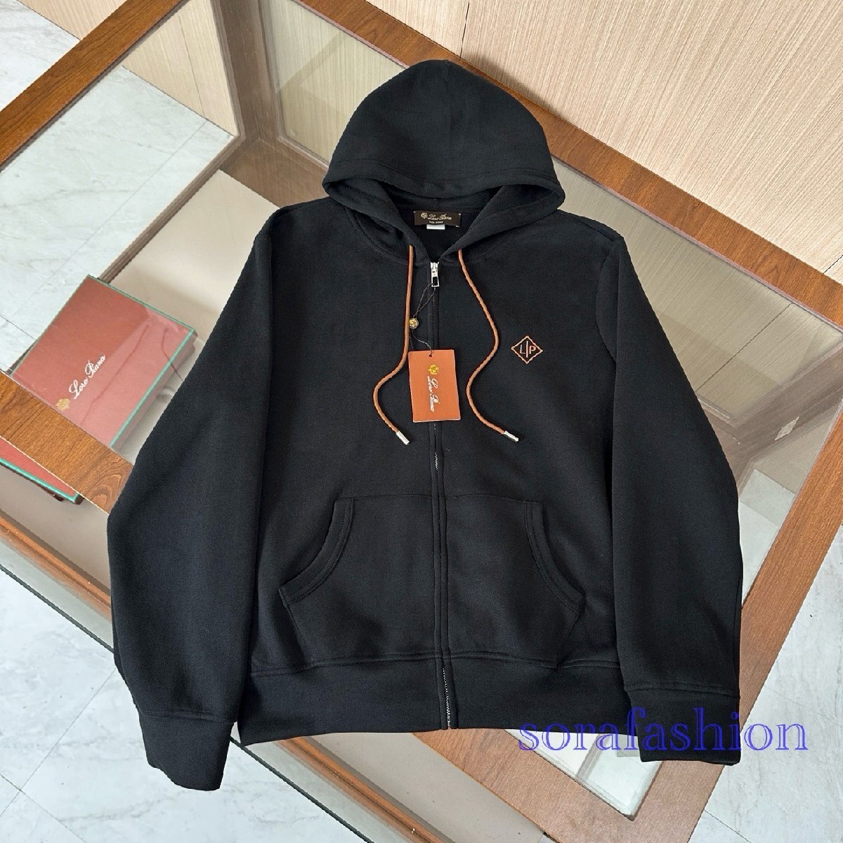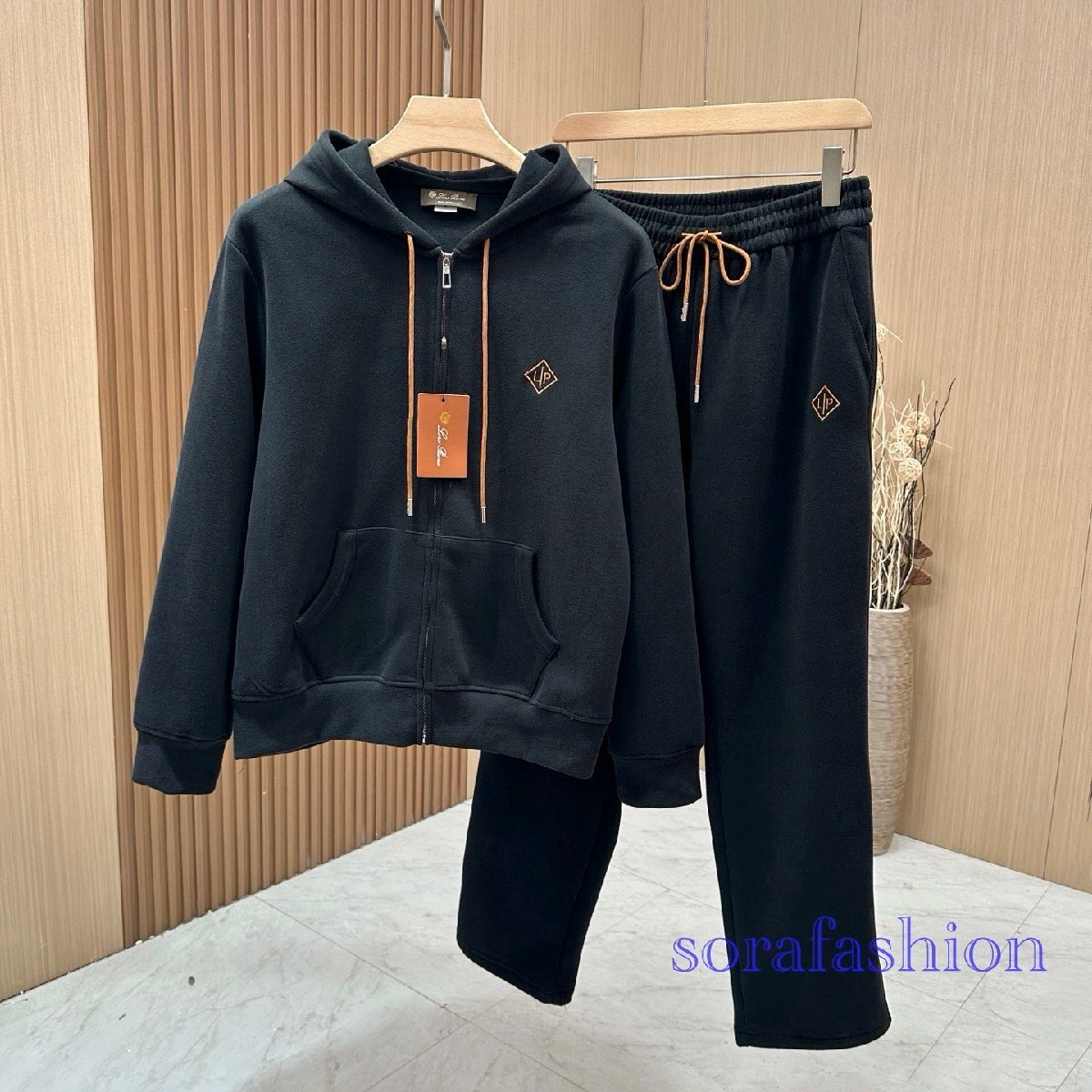 Loro Piana ロロピアーナ メンズセットアップ 上下2点セット ブラック L ジップアップパーカー ロングパンツ スウェットウェア スポーツ