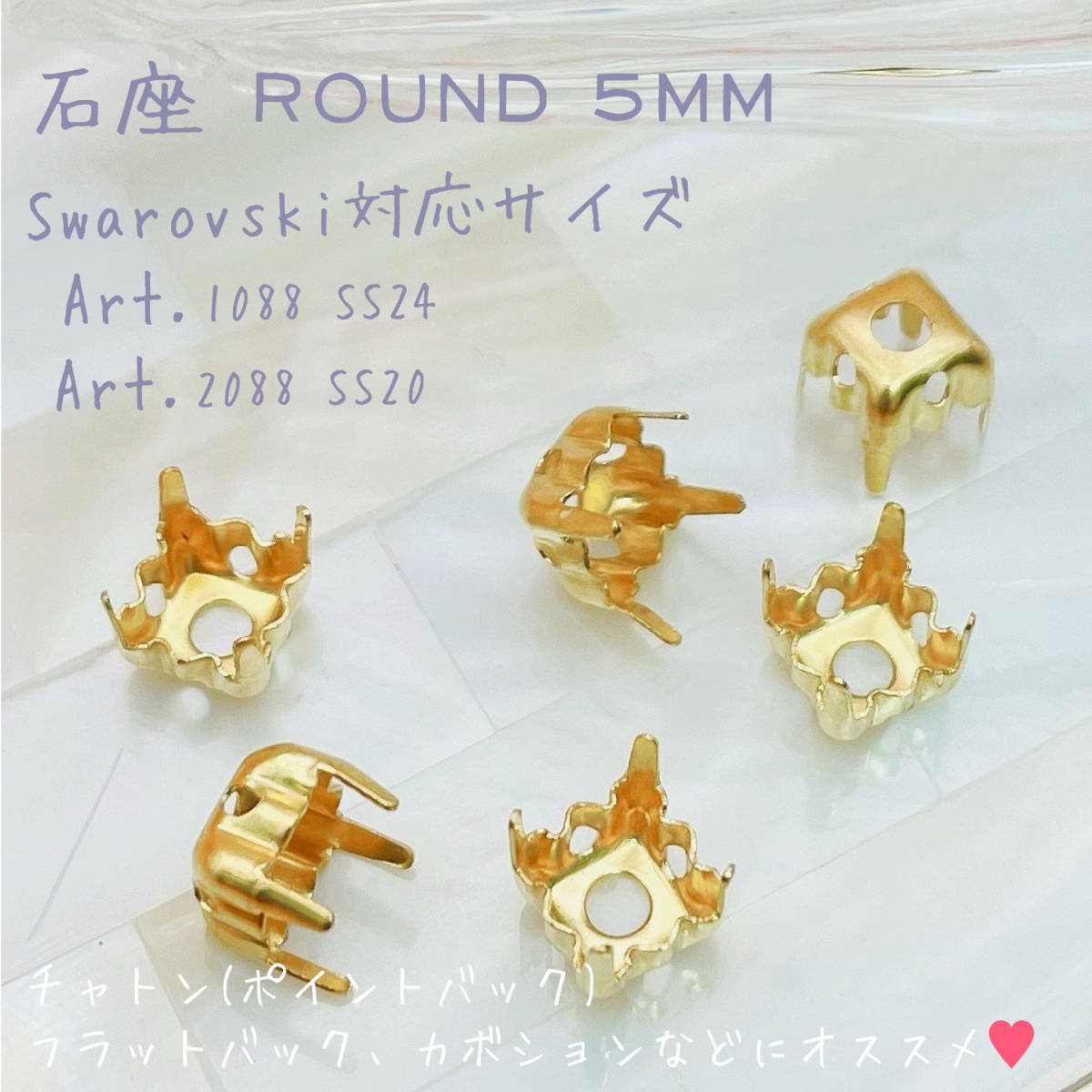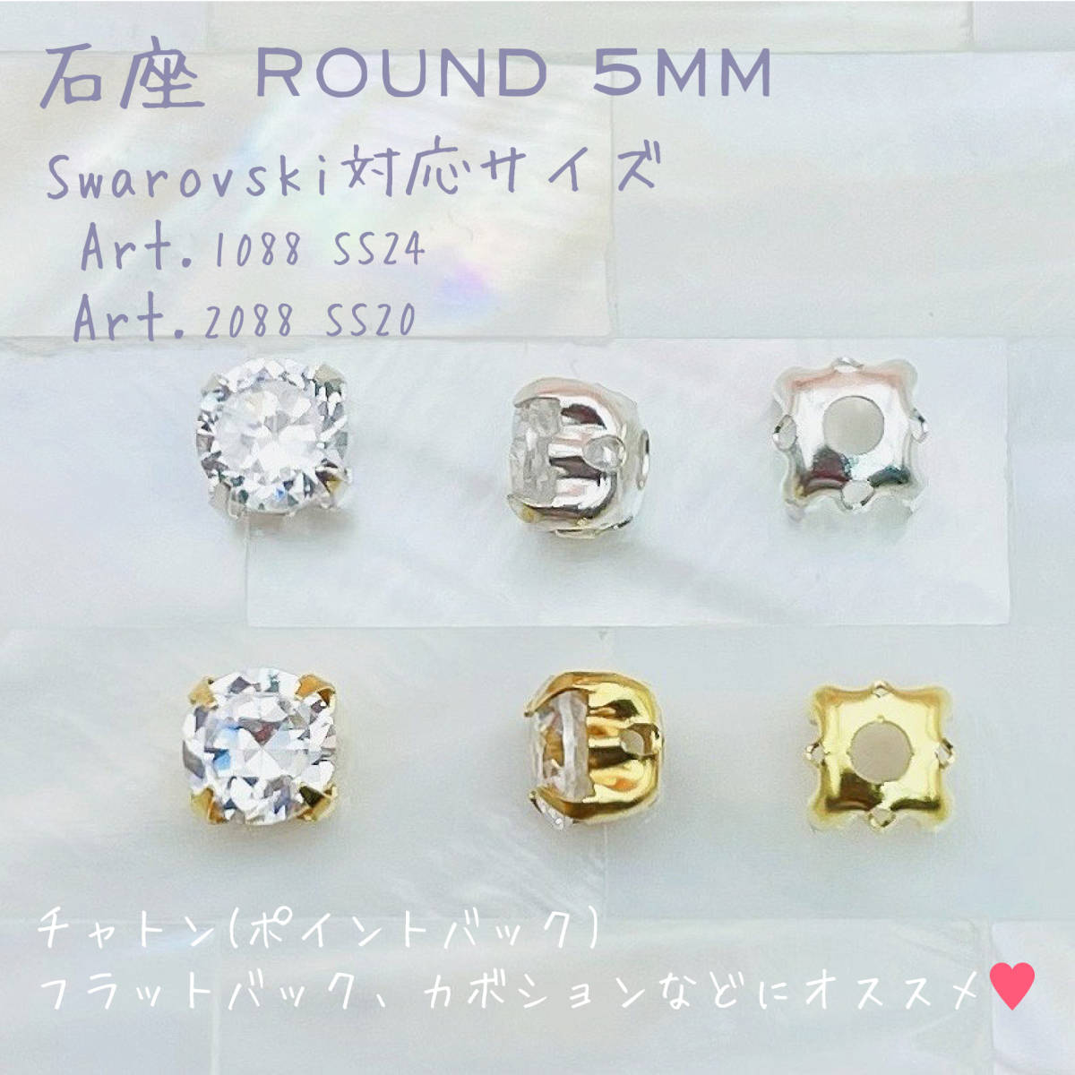 送料無料★akeeeeey★【石座/台座】ラウンド5mm★スワロフスキー #1088 / #2088対応_K5|石座 台座 ラウンド SS24 クロス穴 ハンドメイド