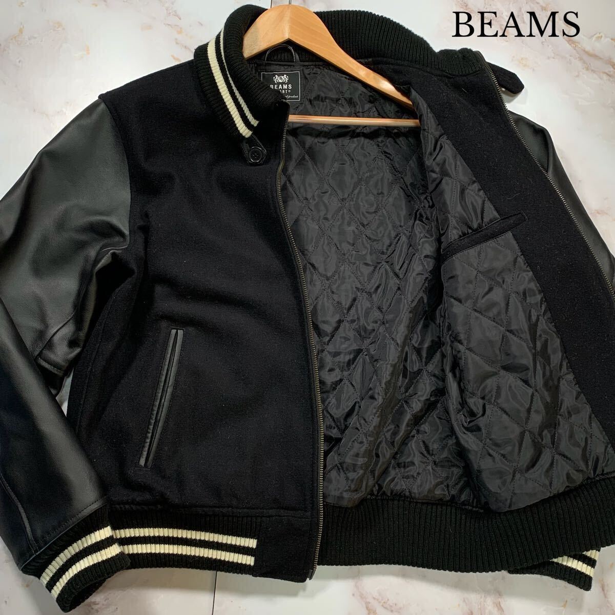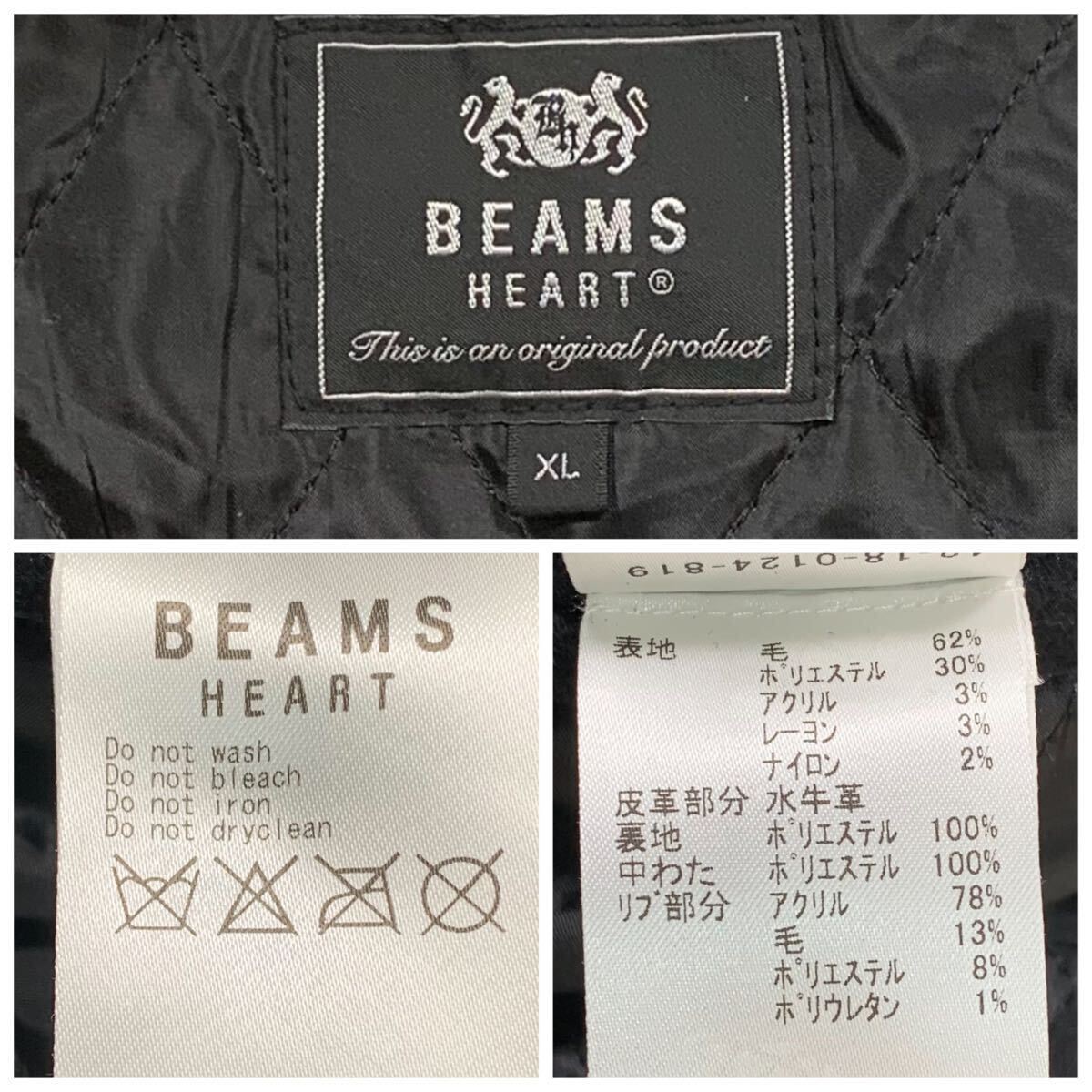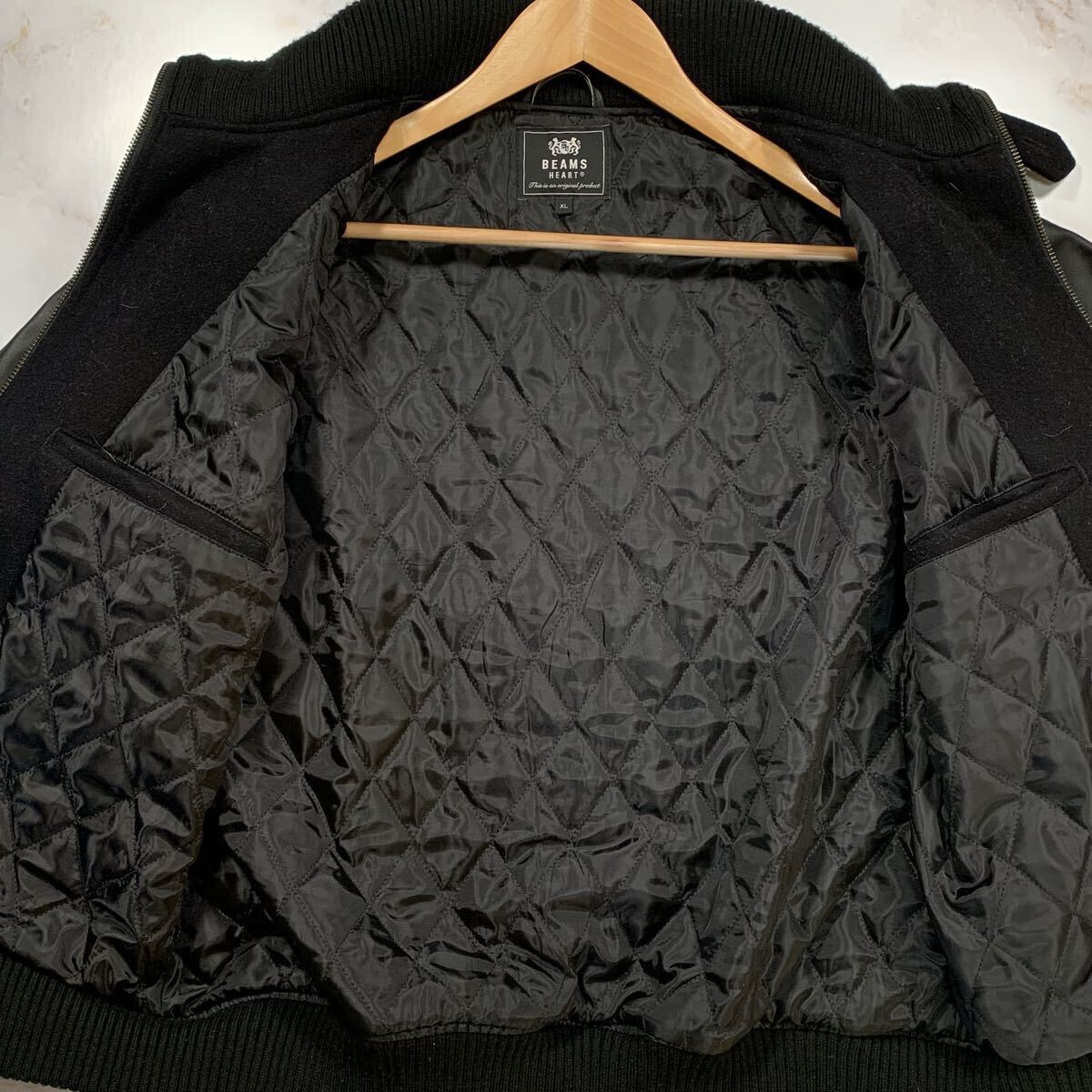 希少XL●BEAM HEART ビームス 水牛革 バッファローレザー 切替 バーシティジャケット スタジャン 裏地キルティング 本革 メンズ ブラック