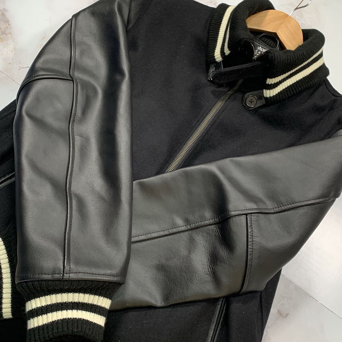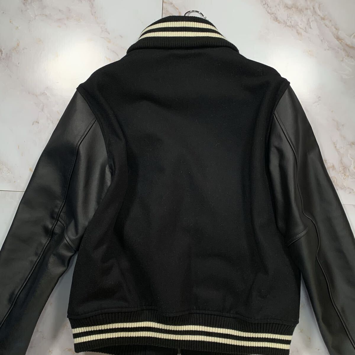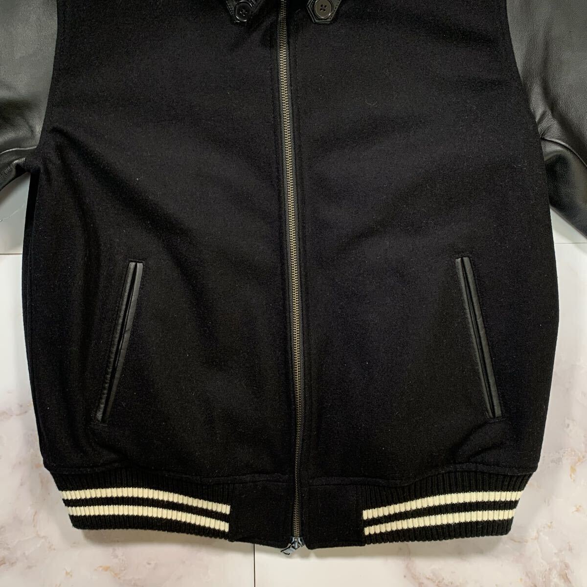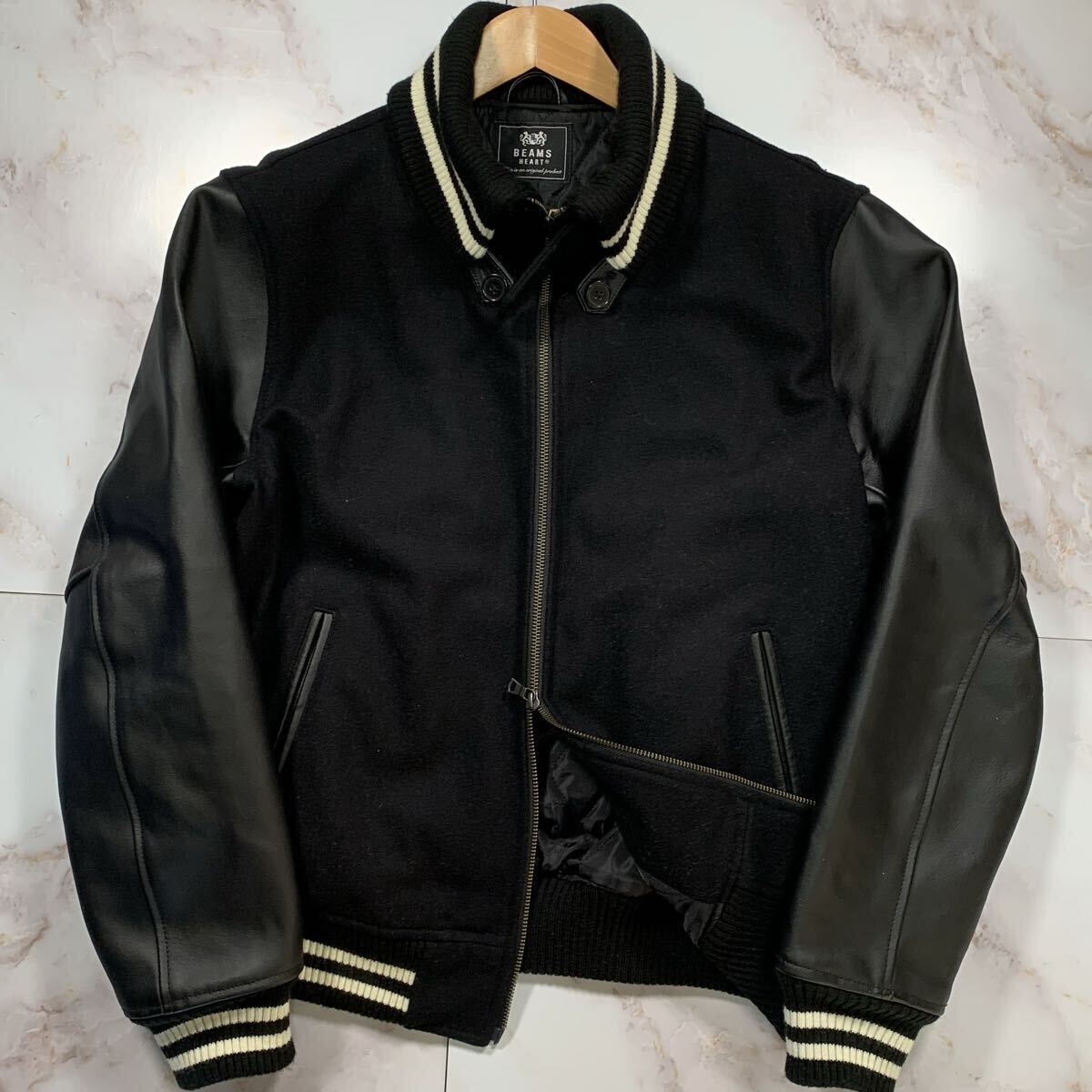 希少XL●BEAM HEART ビームス 水牛革 バッファローレザー 切替 バーシティジャケット スタジャン 裏地キルティング 本革 メンズ ブラック