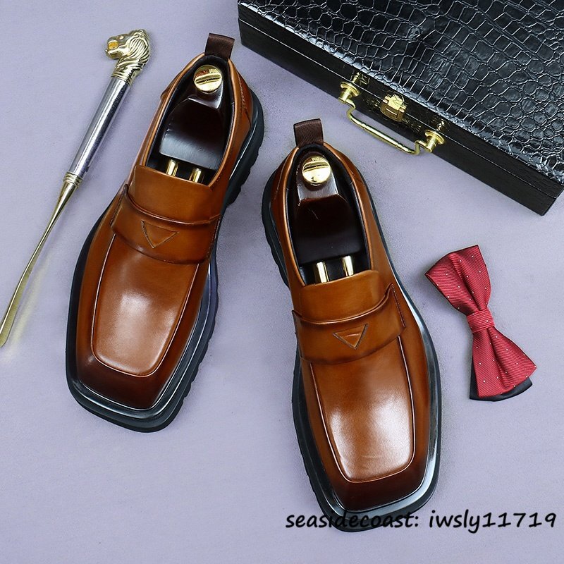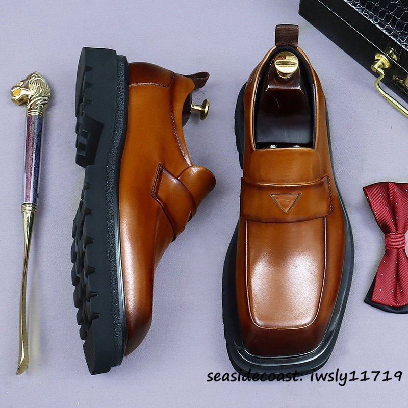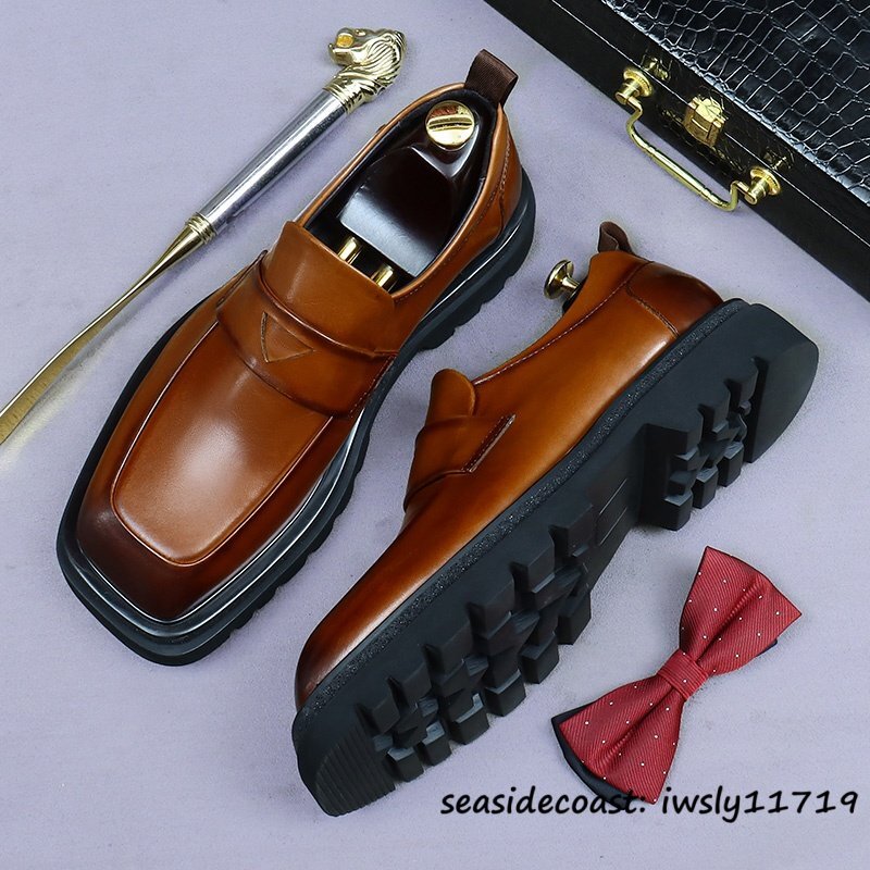 最上級■定価12万 ビジネスシューズ メンズ 身長アップ 本革 レザーシューズ 厚底 職人手作り 牛革 紳士靴 革靴 冠婚葬祭 ブラウン 25.0cm