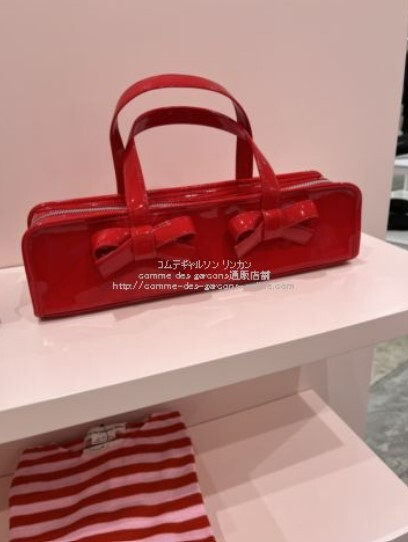 新品タグ付の コムデギャルソン ガール リボン付 横長ミニバッグ(赤) です。