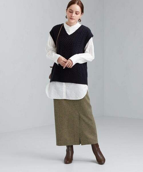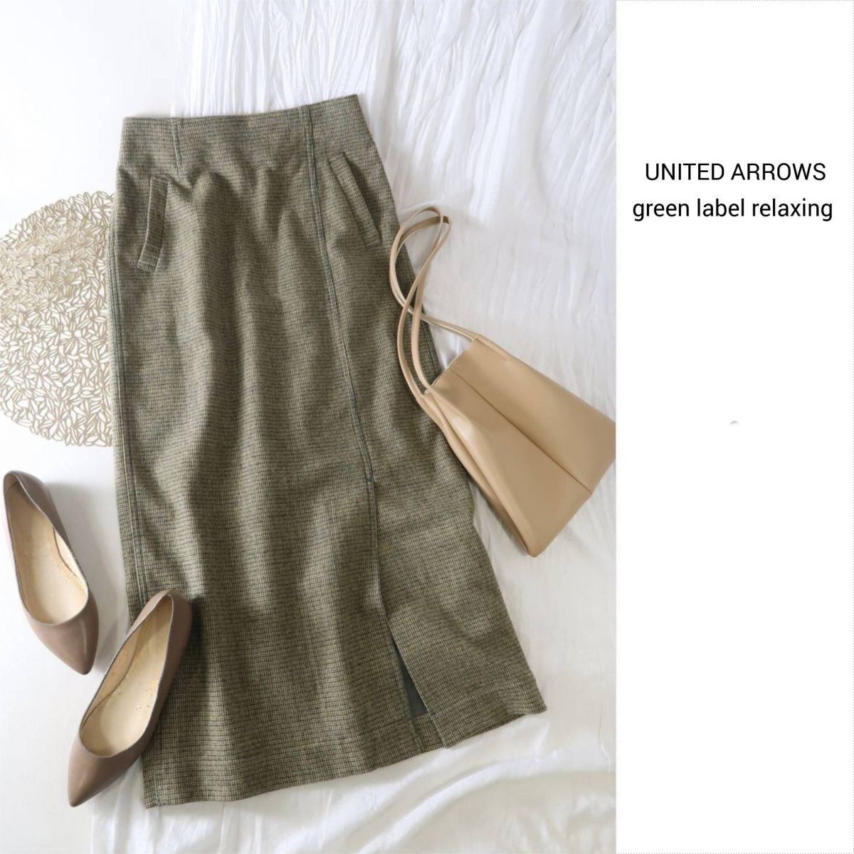 超美品☆ユナイテッドアローズ/green label relaxing☆フラノ ロング タイト スカート 38サイズ☆A-O 6427