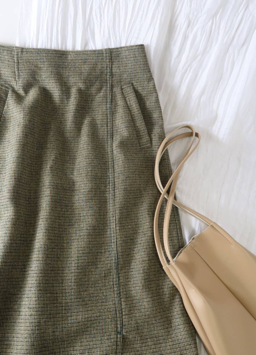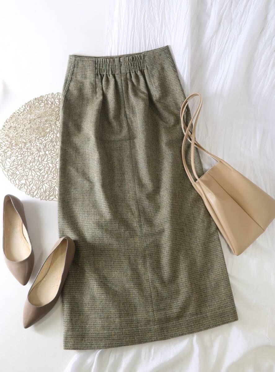 柔らかであたたかな穿き心地が特徴のフラノ素材をたっぷりと使用しています。すとんと落ちるIラインデザインのロング丈で、カジュアルながらもキレイ見えする一枚。又、バックゴム仕様なので穿き心地も楽々です。厚手ニットを合わせてとことん秋冬らしい着こなしがおすすめ!ショートブーツ等で足元を重めにして、いまどきのシルエットをお楽しみください♪