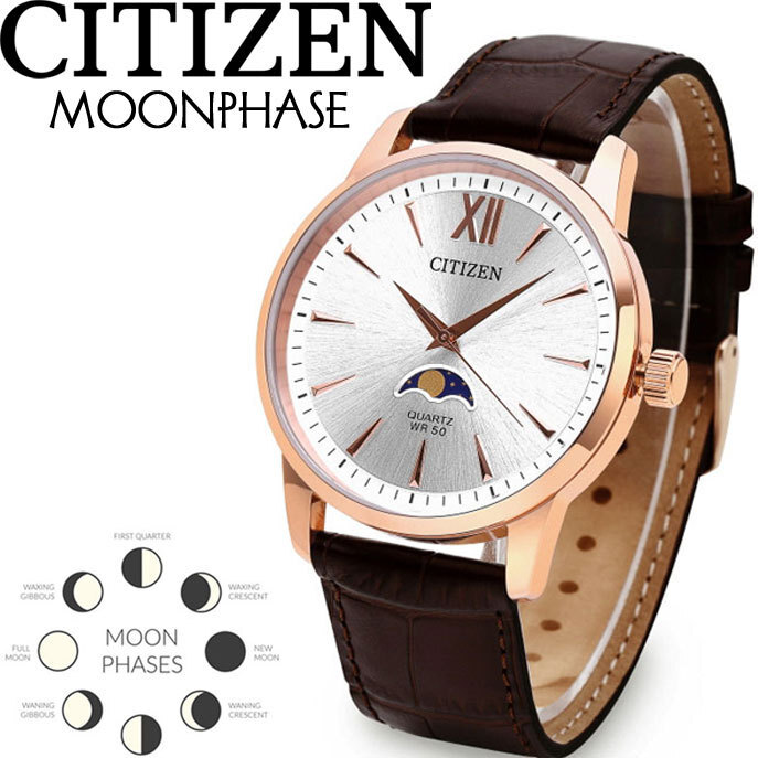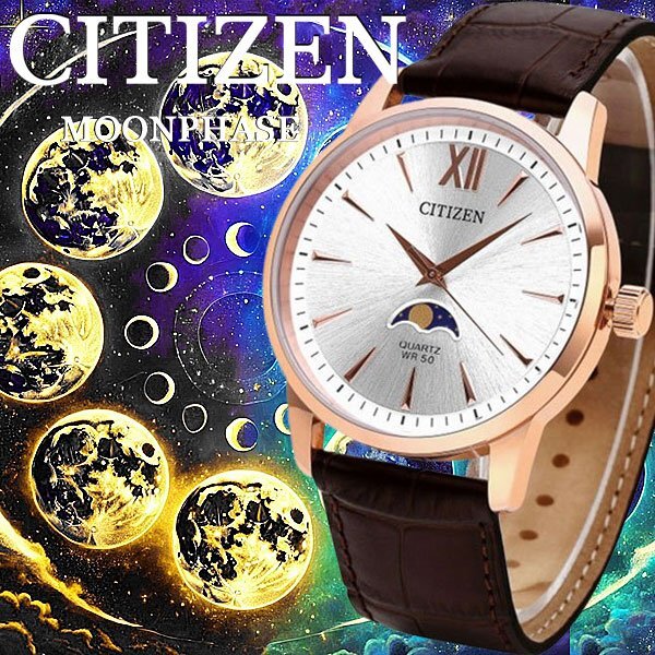 新品1円シチズン月の満ち欠けを知るムーンフェイズ日本製カンパノラと同じキャリバー50m防水コンプリケーションウォッチ逆輸入メンズ腕時計
