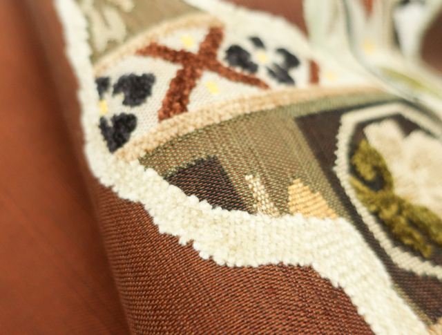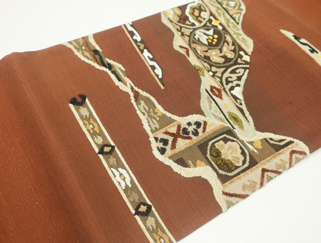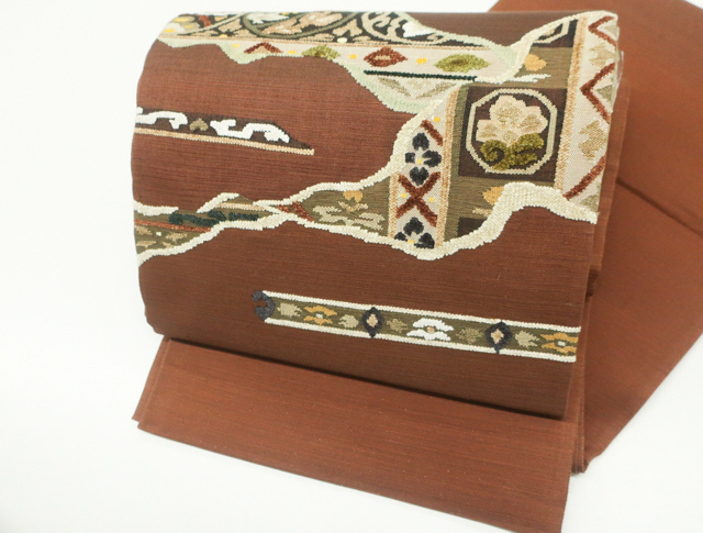 リサイクル商品のため、所々に糸玉のような使用感がございますが、着用可能なお品です。 地色は、茶色です。 1枚目の画像が近いお色かと思われます。 素材は正絹です。 |