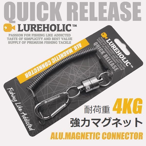 マグネットリリーサーには、垂直耐荷重4kgの強力なネオジウム磁石が使用されています。これにより、軽い接触などでは外れにくく、安心して使うことができます。