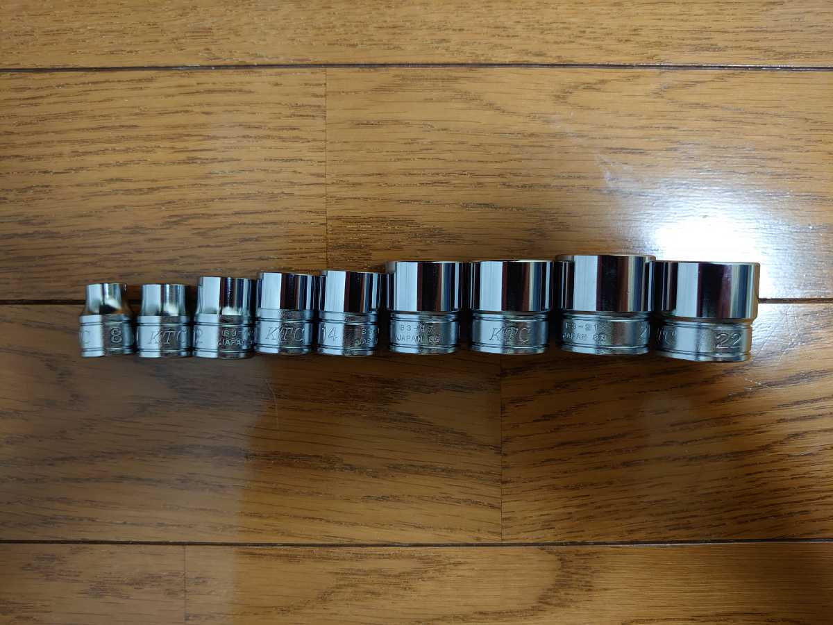 KTC 9.5sq.ソケット(六角) 9本セットB3-08,B3-10,B3-12,B3-13,B3-14,B3-17,B3-19,B3-21,B3-22