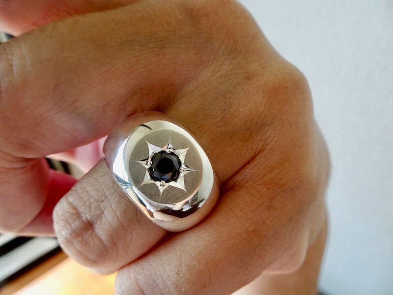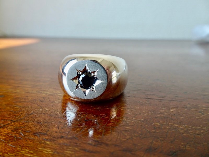 | ■ ■ 商品名: 『一つ星ブラックジルコニア、丸の印台リング』 ■ ■ |