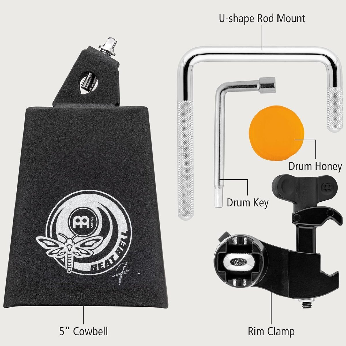 1枚付属するドラムハニーでのサウンドコントロールなど、どんなスタイルのドラミングにも合わせやすく、アニカ・ニルスさんとMEINLの気遣いが盛り込まれた、スティール製カウベルです。