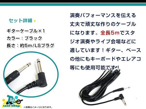 メール便 エレキギター エレアコ エレキベース キーボド等 シールド S/L型プラグ ギターケーブル シールド コード ブラック 5m 1本