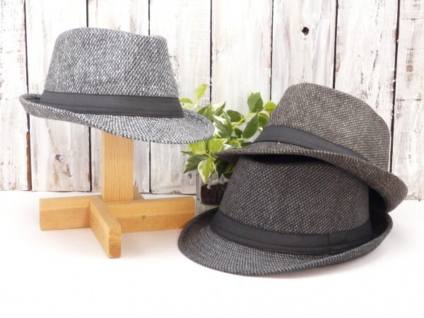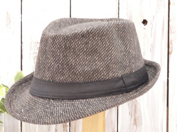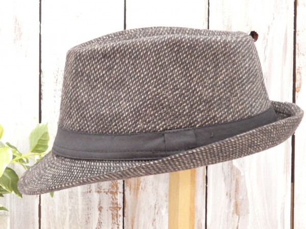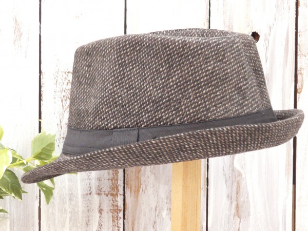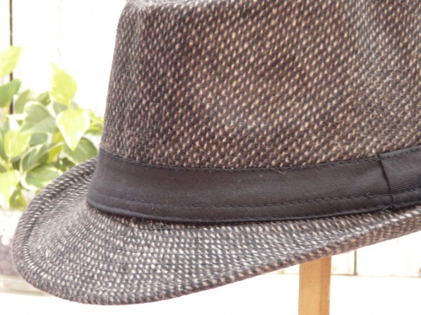 ドット ツイード フェドラハット ダークブラウン 中折れ サイズ調整可 送料\450  男女OK メンズ レディース ボルサリーノ パナマ