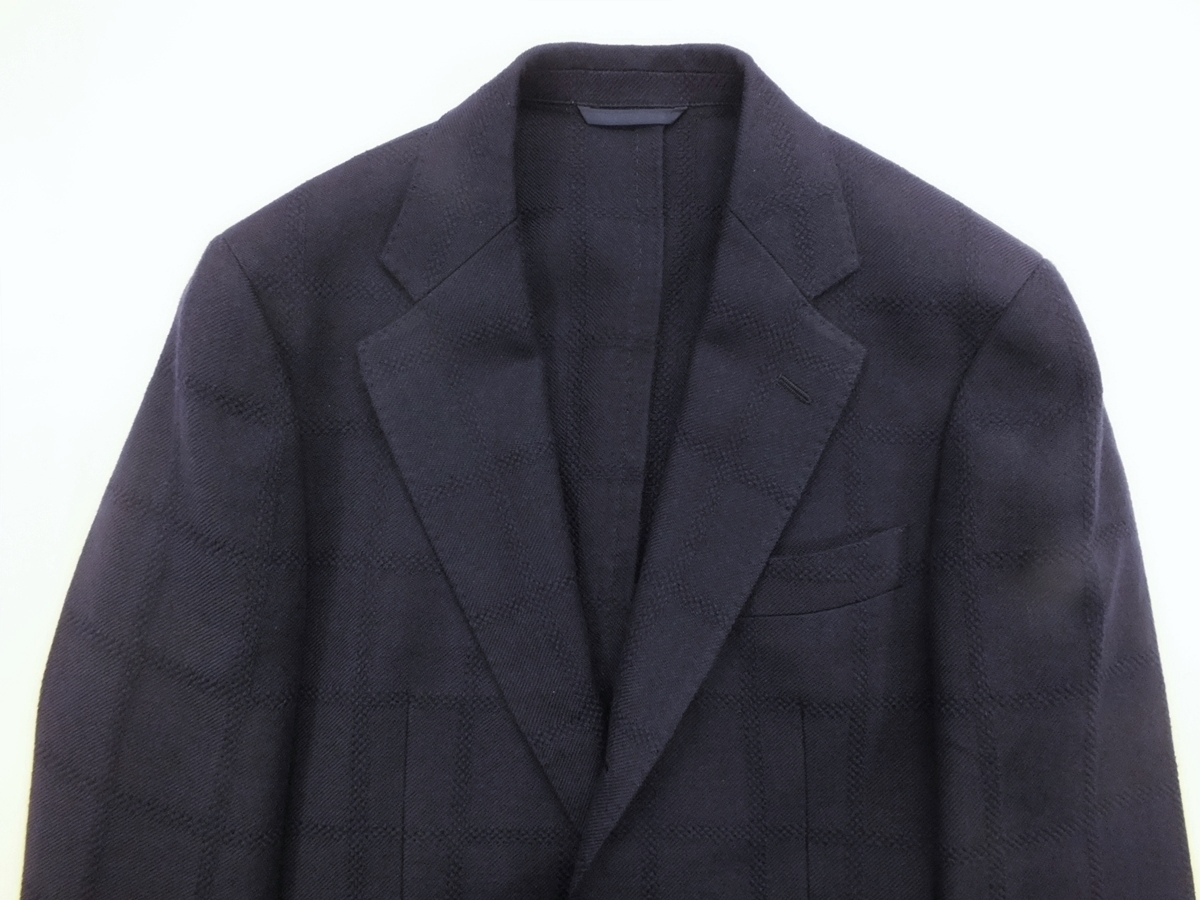 特色 ・薄くて軽い肩パット ・一枚仕立て ・イタリア製高級素材使用 アイテム:3ボタン段返りジャケット サイズ:S(A4)【胸囲90㎝ー胴囲78㎝ー身長165㎝】 上着ベンツ:サイドベンツ 上着胴裏:一枚仕立て 袖釦:4個(重ねボタン) 色:ネービー系 柄:ウィンドペンの無地感覚 表素材:毛100(イタリア製) 胴裏素材:ポリエステル100 袖裏素材:ポリエステル100 縫製:中国 詳細な寸法 S(A4)【胸囲90㎝ー胴囲78㎝ー身長165㎝】 胸囲88cm/胴廻り86cm/上着丈68cm/肩幅43.3cm/袖丈58cm M(A5)【胸囲92㎝ー胴囲80㎝ー身長170㎝】 胸囲92cm/胴廻り88cm/上着丈70cm/肩幅44cm/袖丈59.5cm L(A6)【胸囲94㎝ー胴囲82㎝ー身長175㎝】 胸囲94cm/胴廻り90cm/上着丈72cm/肩幅44.7cm/袖丈61cm LL(A7)【胸囲96㎝ー胴囲84㎝ー身長180㎝】 胸囲96cm/胴廻り92cm/上着丈74cm/肩幅45.4cm/袖丈62.5cm 3L(A8)【胸囲98㎝ー胴囲86㎝ー身長185㎝】 胸囲98cm/胴廻り94cm/上着丈76cm/肩幅46.1cm/袖丈64cm | ||||
