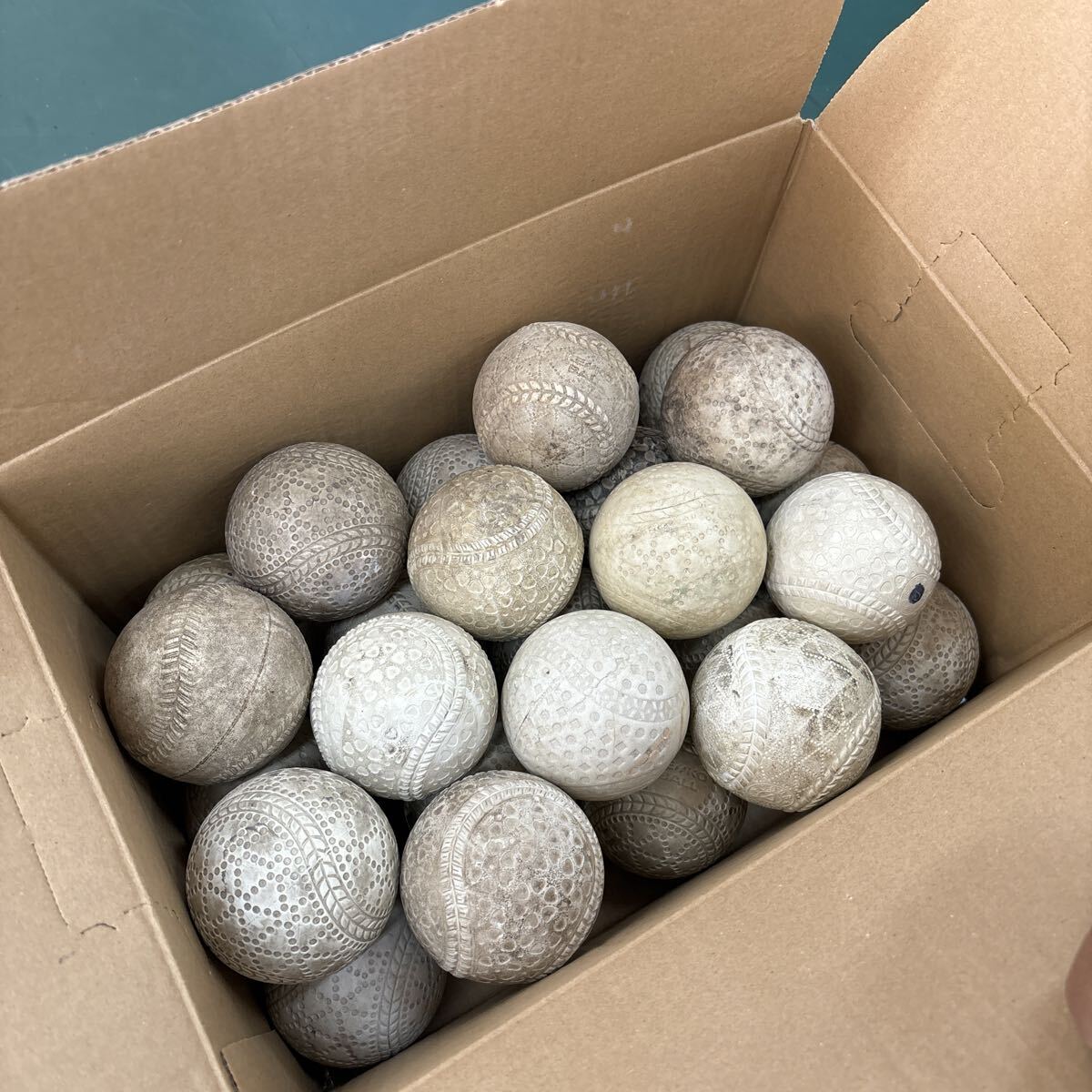写真のボールが実際に入っているボールです。色々混ざってます。ティーバッティングなどに使ってました。1球だけ準硬式ボールあります。