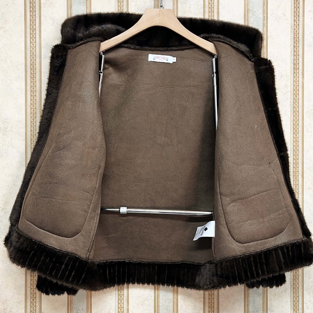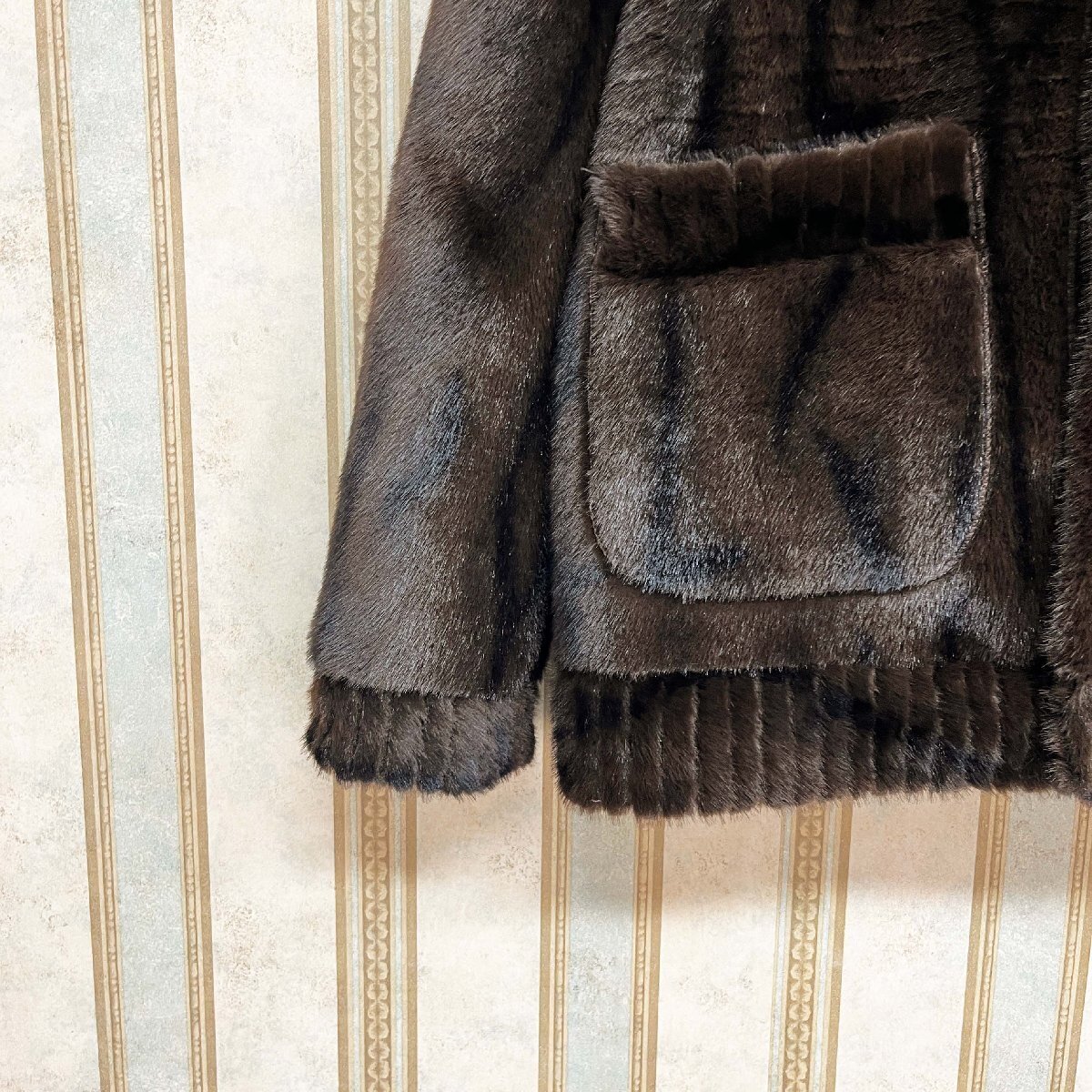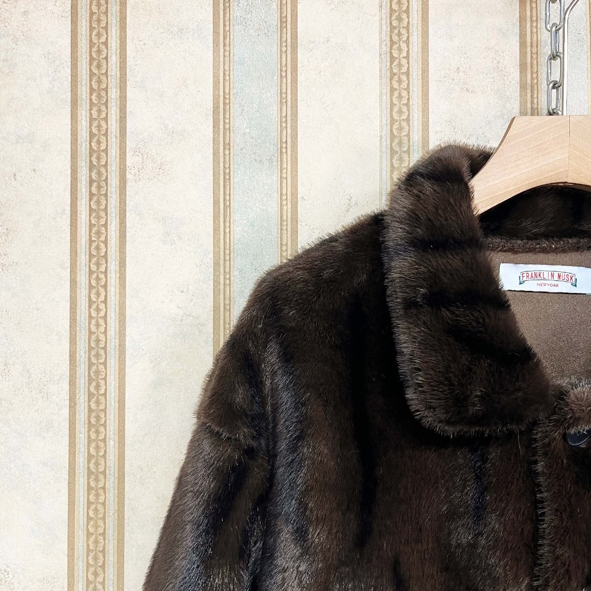 高級 定価8万 FRANKLIN MUSK・アメリカ・ニューヨーク発 ファーコート ミンク混 ソフト ふわふわ 豪華毛皮 光沢感 ジャケット アウター 防寒着 サイズ3