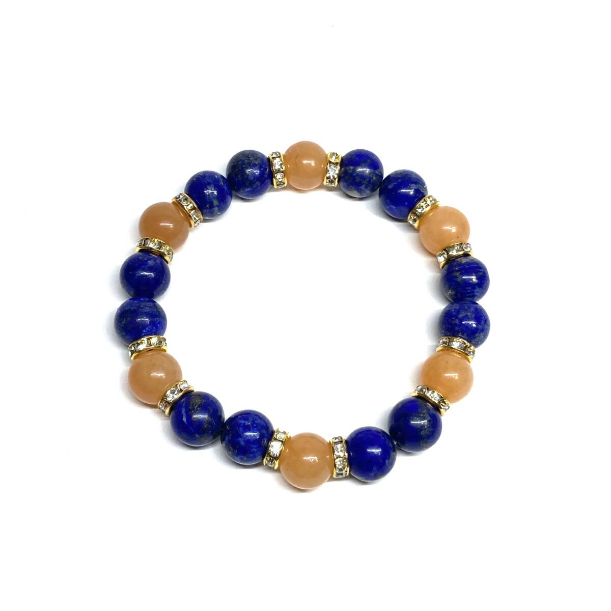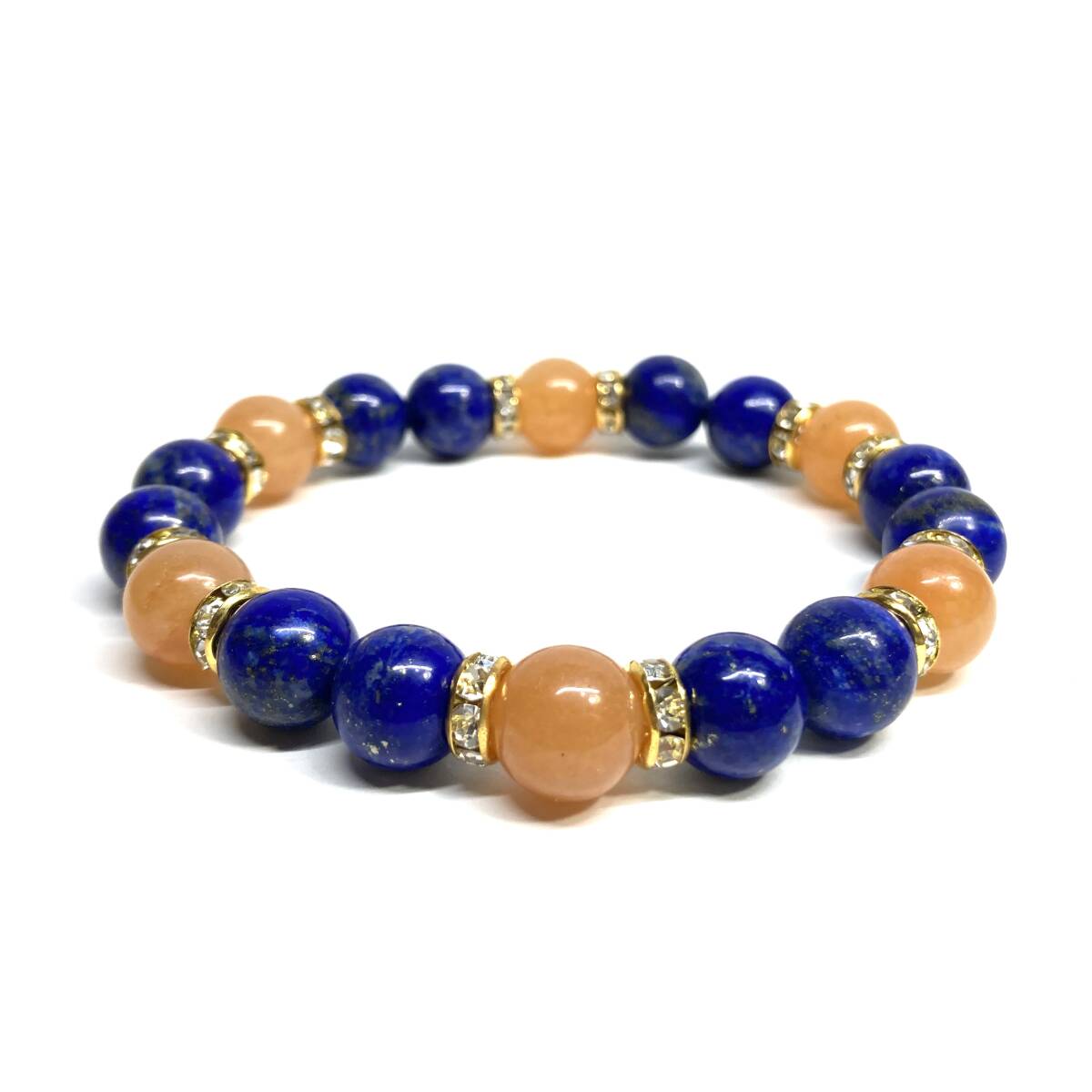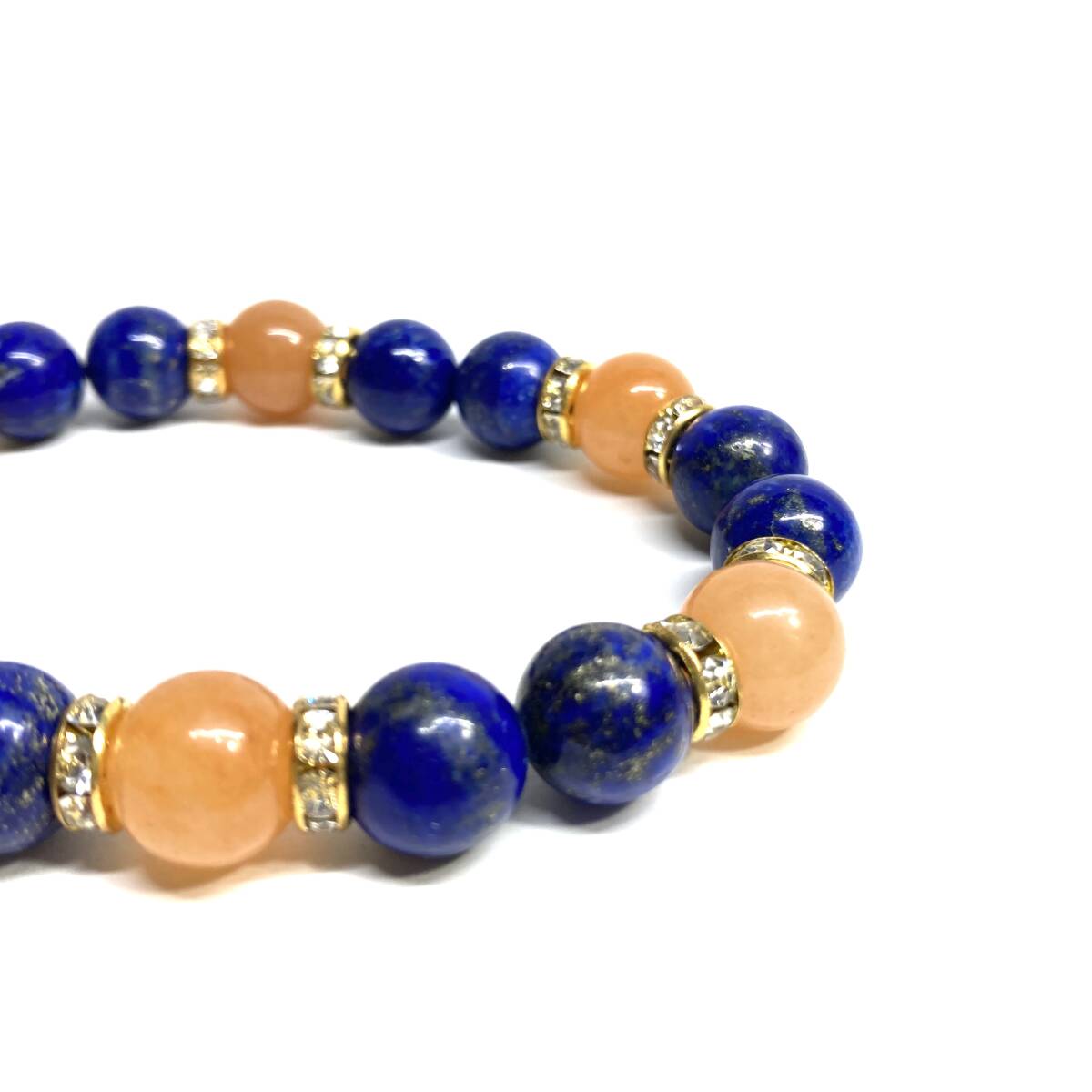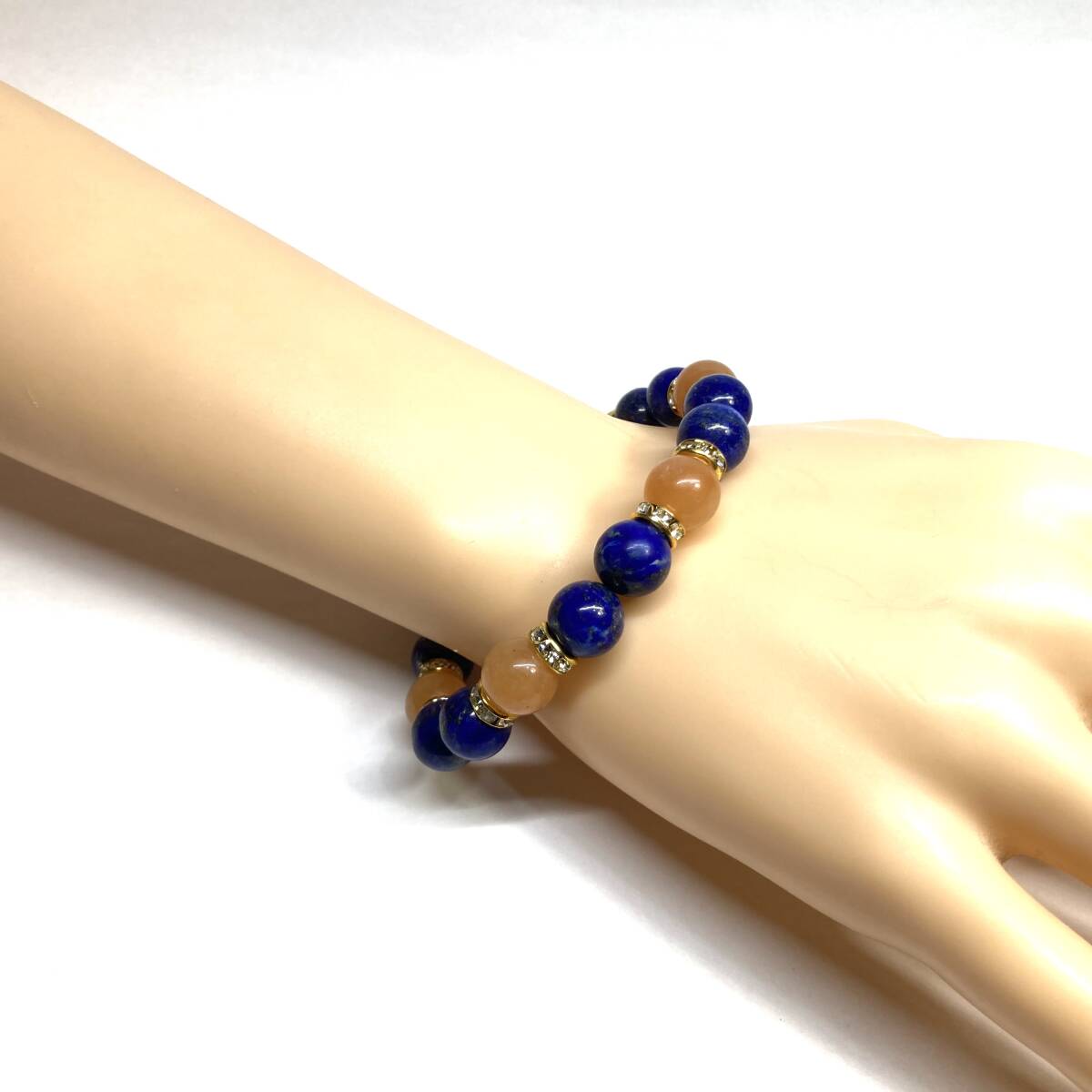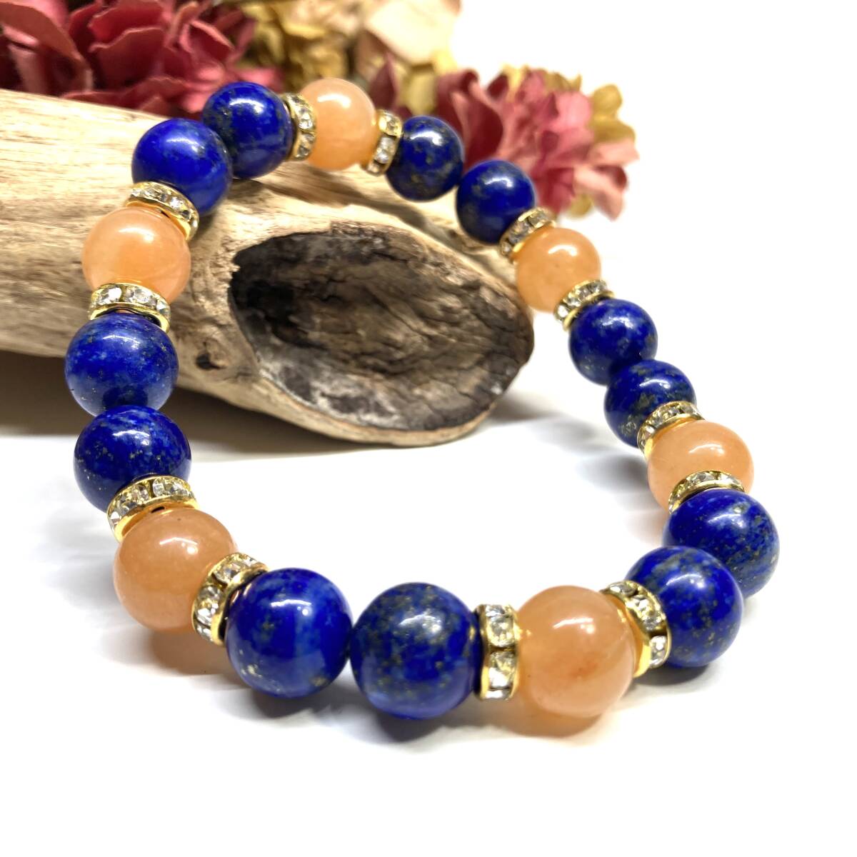 こちらは、ラピスラズリとレッドアベンチュリンを組み合わせたパワーストーンブレスレットです。間にはロンデルを挟み高級感あるデザインに仕上げております。石大きさは腕にも馴染みやすいように10mm玉で内径約18cm(伸可能)です。(サイズ変更の場合は取引ナビにてご連絡をお願いします。) 数に限りがございますので気になる方はお早めにどうぞ。