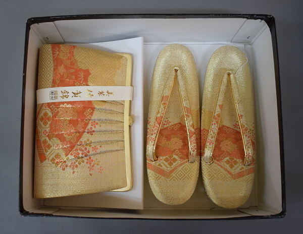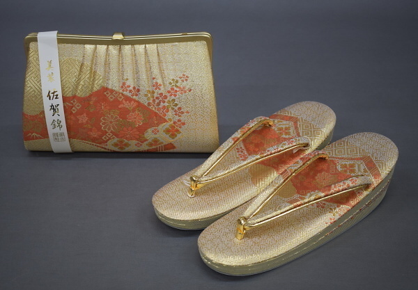 商品名   A26-12【凛々】即決 新古品 佐賀錦 和装 草履バッグ セット ゴールド