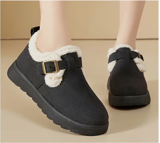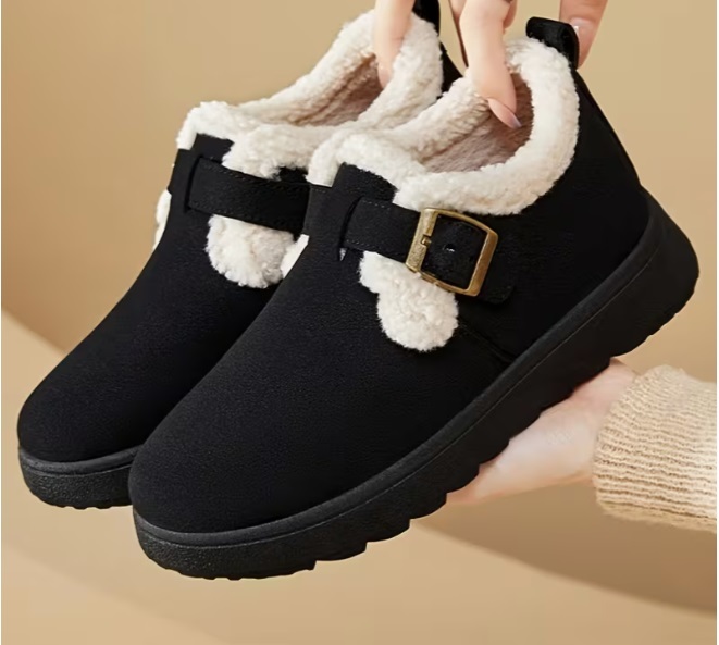 ◎23㎝ 黒 ぽかぽかレディーススノーシューズ ウィンターシューズ 防寒 スリッポン お洒落なバックル