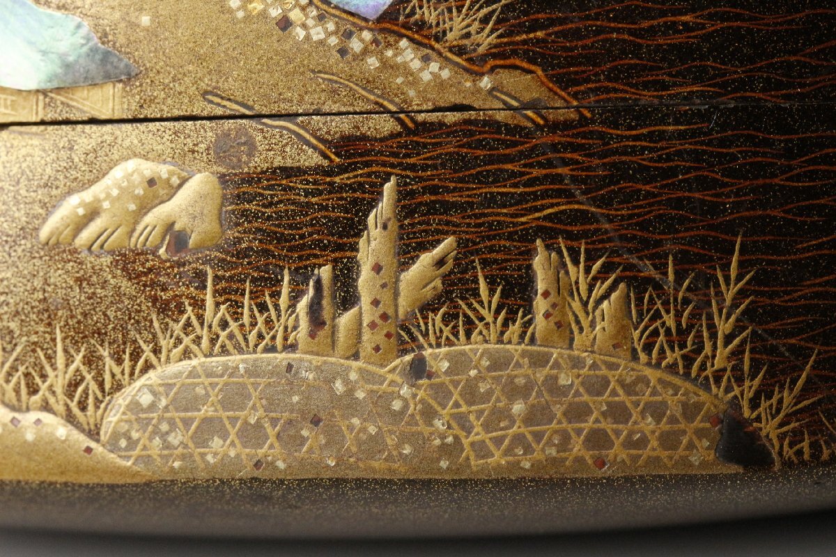 * * * 商品詳細 * * * ここでしか出逢うことのできない唯一の美をご紹介させて頂きます。 豪華な蒔絵で仕上げられた美しい印籠のご紹介です。 澄み渡った清浄な空気を感じさせる雄大な風景が鮮やかな蒔絵で表現されており、 緻密な技と表現が小さな画面に散りばめられています。 光りを受け輝く螺鈿の色彩も素晴らしく、七色の光は何とも幻想的です。 蒔絵の魅力が活かされた素晴らしい逸品です。 この機会に是非お求めください。 ■サイズ/横7.3cm×縦8cm×厚み2.5㎝ ■状態/スレ、キズ、欠け、剥げ、漆にヒビ、紐にヤケ、ほつれがございます。 ※写真にてご確認、ご了承の上ご入札下さい。 Yahoo!かんたん決済 * * * 発送詳細 * * * 入金確認後3営業日以内に発送致します。 ※直接引き取りも可能です。 60~160サイズにつきましては 佐川急便、ゆうパックのどちらかで発送いたします。 ゆうパック発送の場合、弊社の発送日から追跡サービスに問合せ番号が反映されるまで 約1日ほどお時間がかかりますのでご了承下さい。 * * * 注意事項 * * * 運送中の破損があった場合は速やかに当社までご連絡下さい。 保険を利用するのに受取連絡後に運送会社による現場での破損状況確認が必要となります。 勝手に返送されますと保険の適用外となりますのでご注意ください。 * * * * * * お問い合わせ:082-236-8669 |
