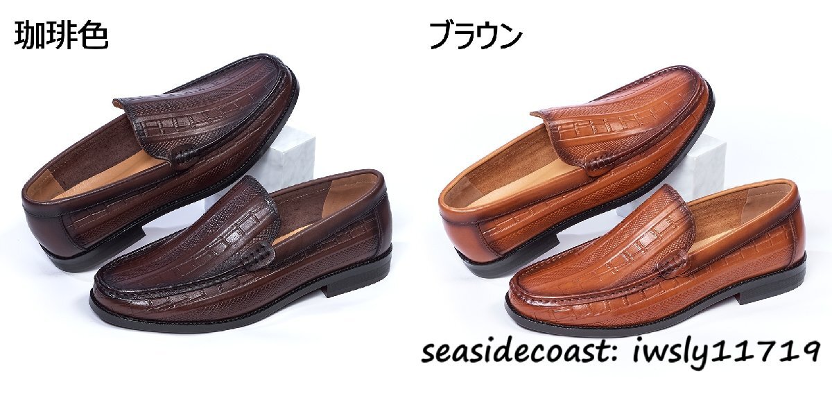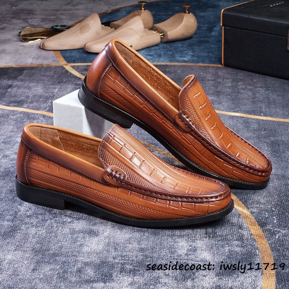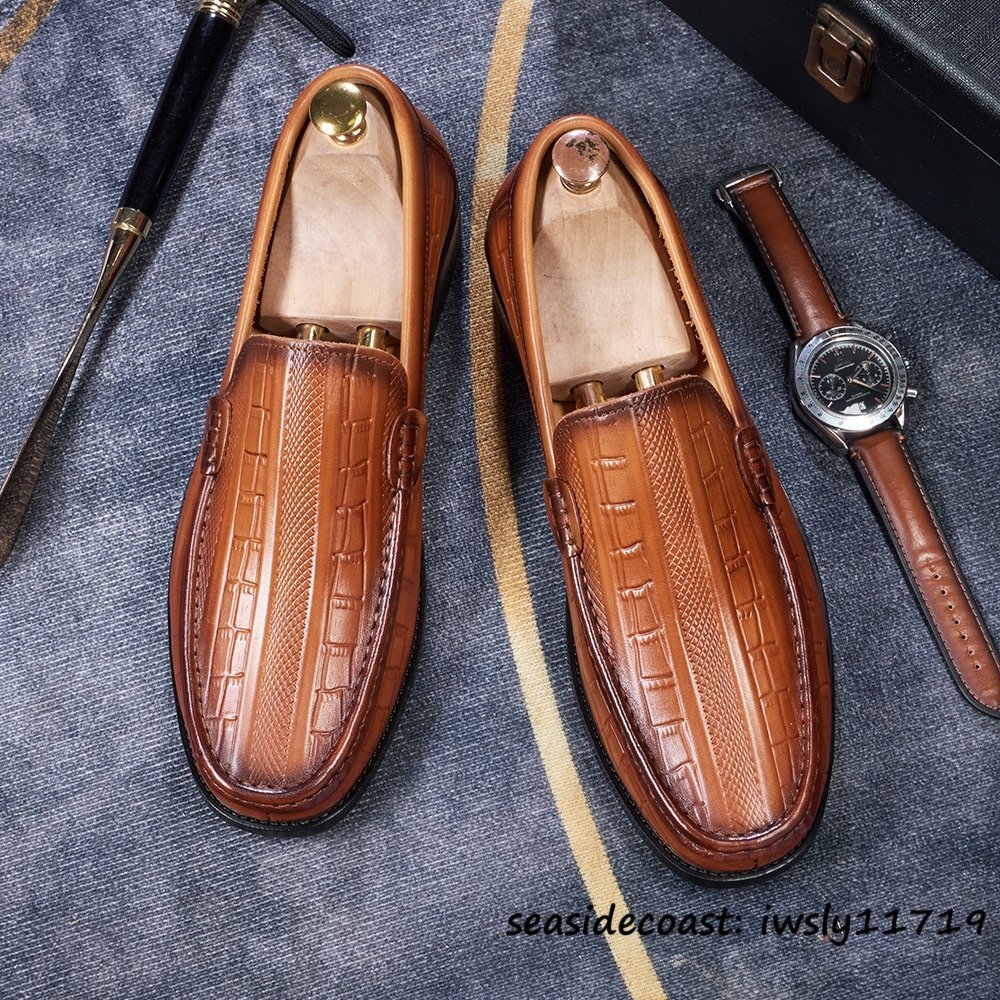 超希少★ドライビングシューズ メンズ 本革 鰐柄 ローファー スリッポン 職人手作り ビジネス 通勤 牛革 レザーシューズ ブラウン 25.5cm