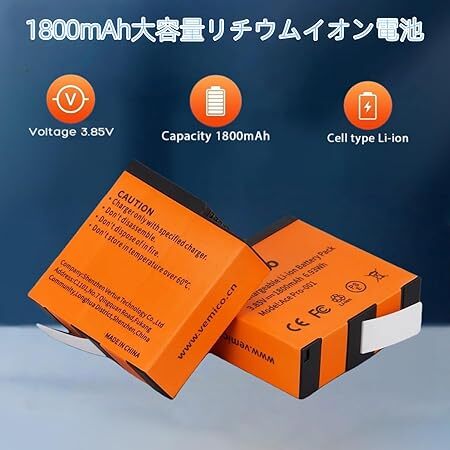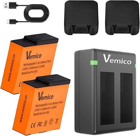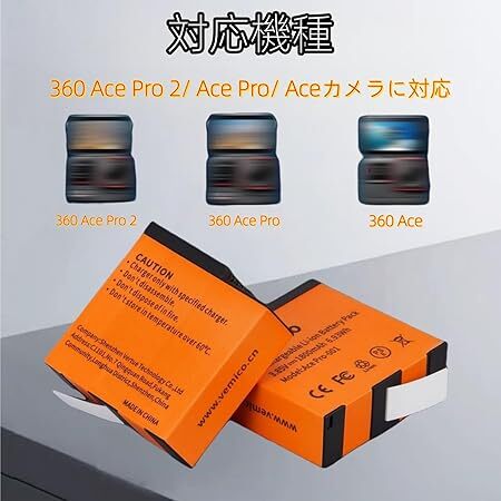 Vemico 360 Ace Pro2 互換バッテリー 1800mAh大容量バッテリー 2個 360 Ace予備電池 360Ace Pro バッテリーチャージキット 1202