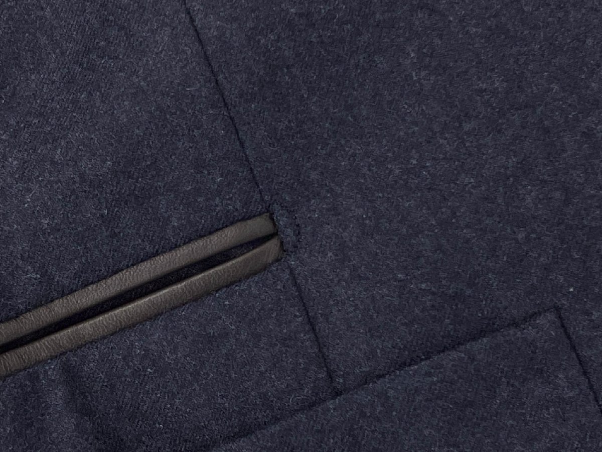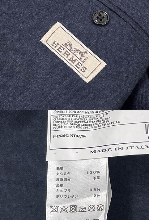 極美品【エルメス HERMES】G19800 カシミア100% 2B ラムレザーパイピング 微起毛 2パッチ スーツ (メンズ)56/8R 紺系イタリア製 35RMS3036