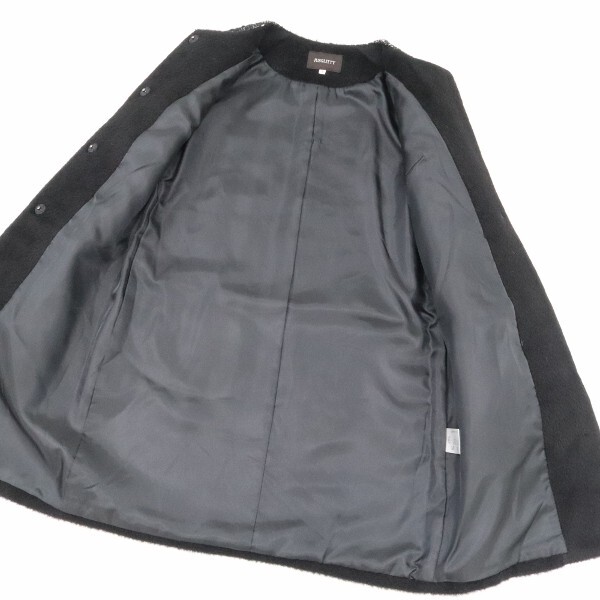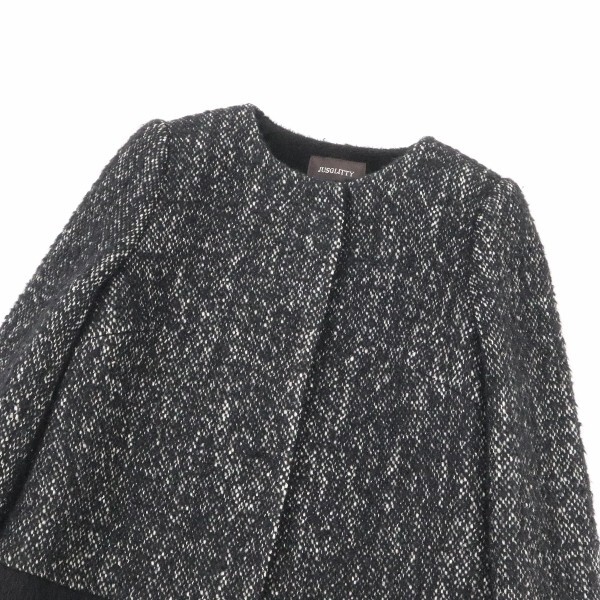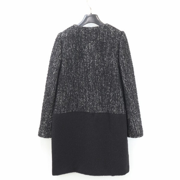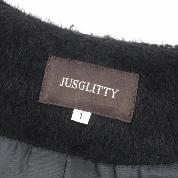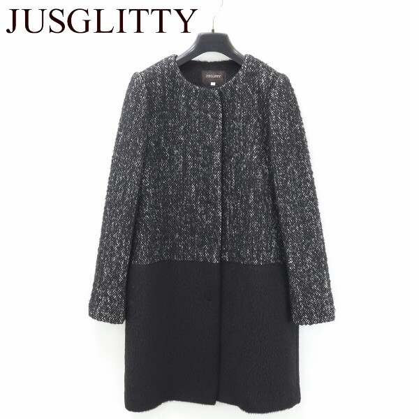 | 【KA772】美品◆JUSGLITTY ジャスグリッティー アルパカ混 ツイード 切替 ノーカラー コート 黒 ブラック系 1 | |