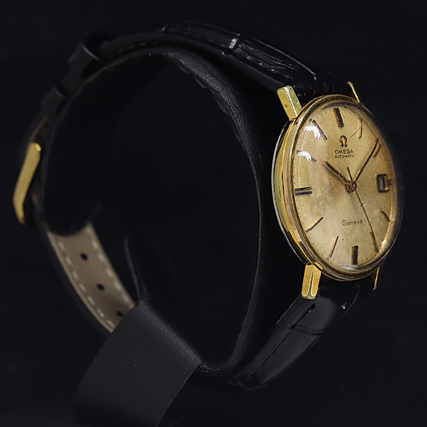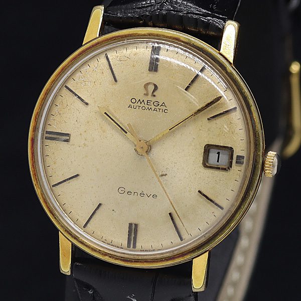 1円 稼働 オメガ AT/自動巻 ジュネーブ ゴールド文字盤 デイト メンズ腕時計 9506200 12OKT IKE